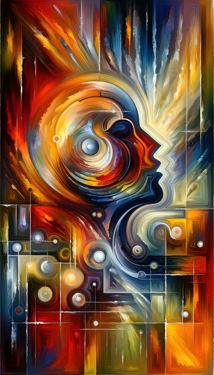 Compassionate Ethical Guidance is a striking vertical image rendered in Tachism style,...
