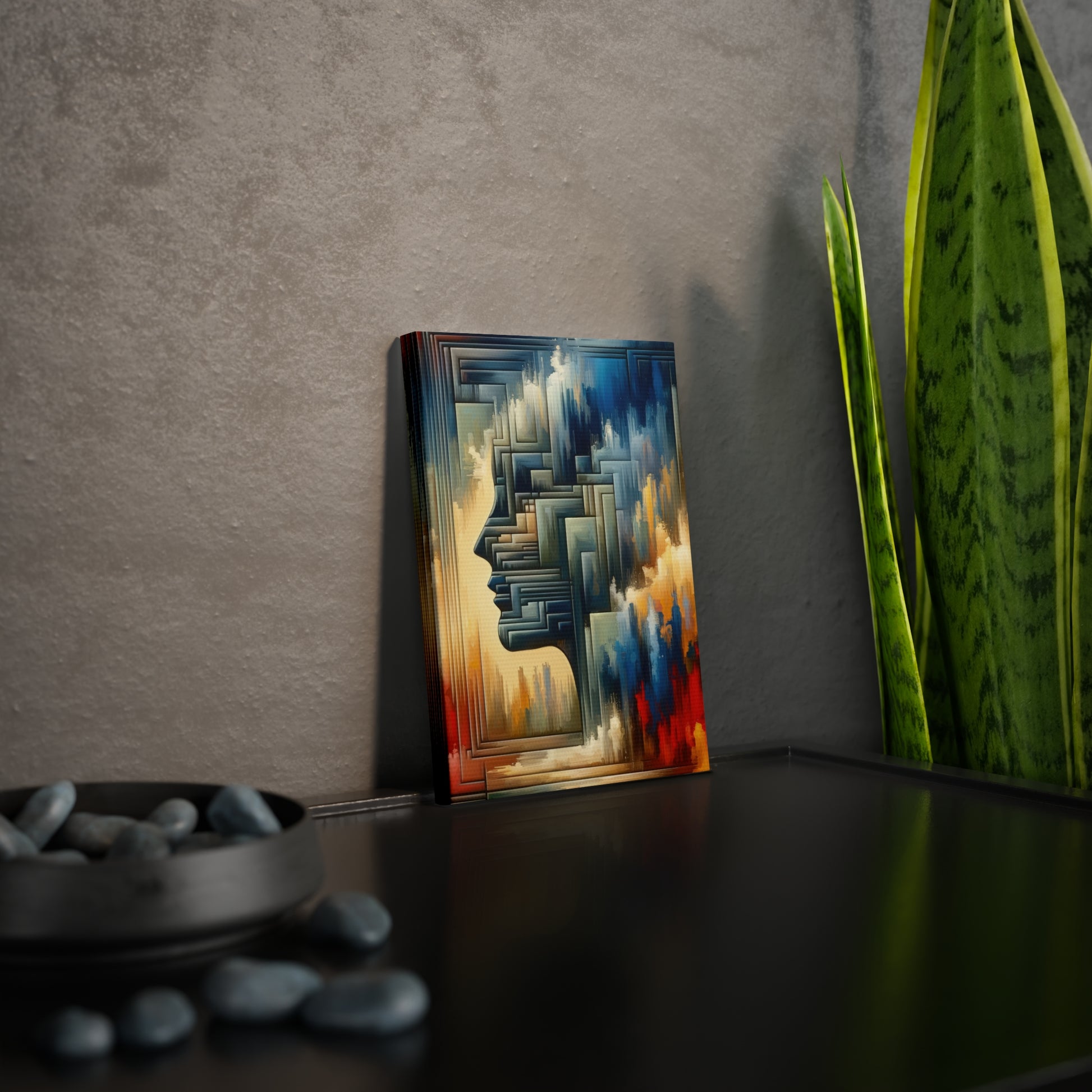 Enhance your space with the captivating beauty of "Abstract Geometric Boundaries" on a Canvas Photo Tile. This stunning piece invites you to ponder the impact of boundaries in our lives, relationships, and surroundings, while its mesmerizing design adds depth and intrigue to any room. Made with high-quality materials, including OBA-free canvas and a sturdy paperboard backing, this tile print is not only visually striking but also built to last. Available in two sizes and multiple orientation options, this piece can be effortlessly integrated into your decor. Plus, with double-sided tape included for easy hanging, you can enjoy this unique artwork in no time. Elevate your space with this thought-provoking and visually striking canvas tile print, expertly assembled in the USA from globally sourced parts. Add a touch of sophistication and contemplation to your home with "Abstract Geometric Boundaries."