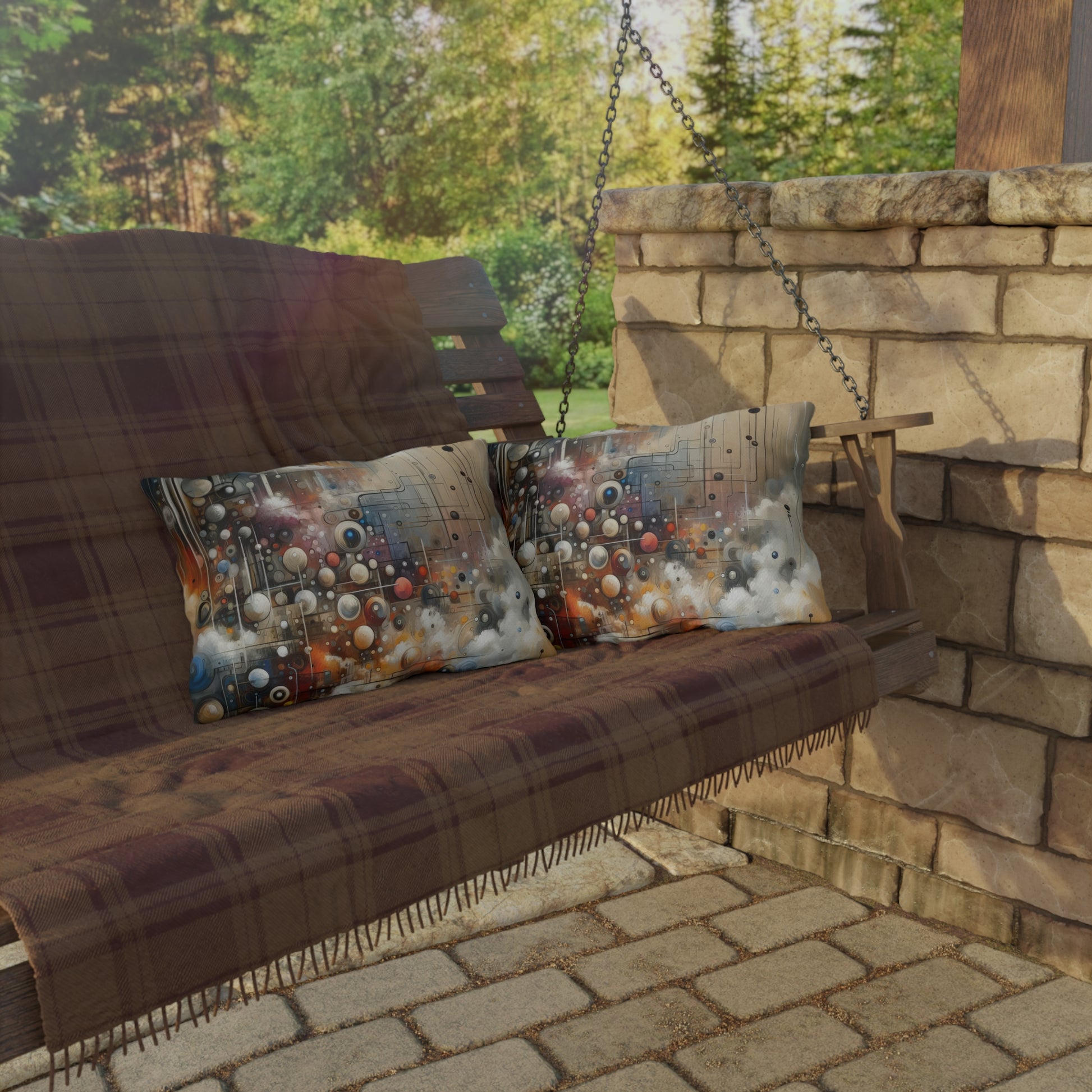 Enhance your outdoor space with the mesmerizing beauty of our Abstract Mechanical Harmony outdoor pillows. Featuring a stunning design that seamlessly blends man-made structures and natural elements in perfect harmony, these custom pillows are the perfect aesthetic uplift for any patio or outdoor area.