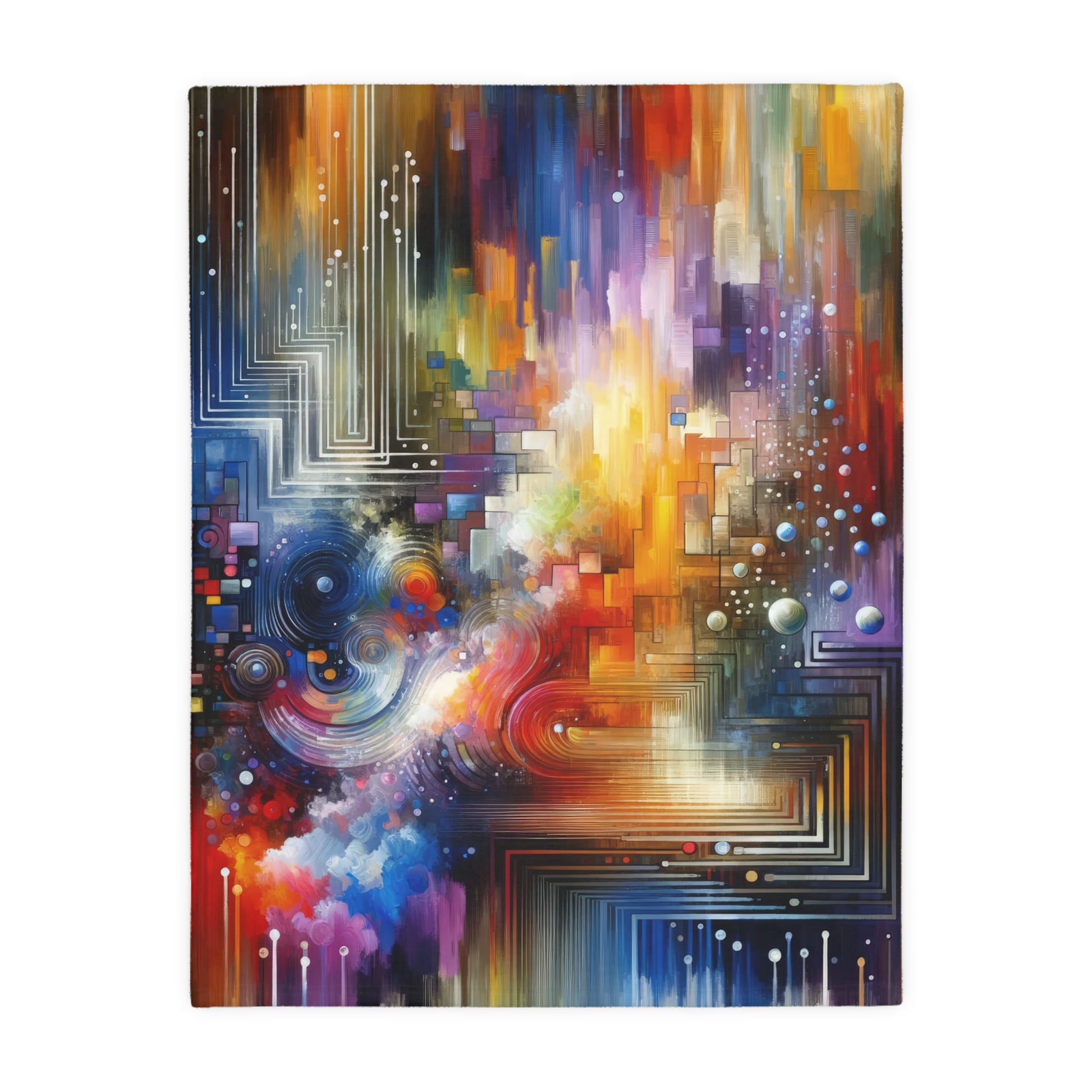 Wrap yourself in a vibrant blend of technology and spirituality with our "Abstract Technicolor Synthesis" Velveteen Microfiber Blanket. This stunning piece of art challenges traditional boundaries, inviting you to explore the intersection of digital innovation and faith in a visually captivating way. The dynamic composition and lively colors draw you in, encouraging contemplation of the intricate balance between the tangible and intangible, logic and emotion.