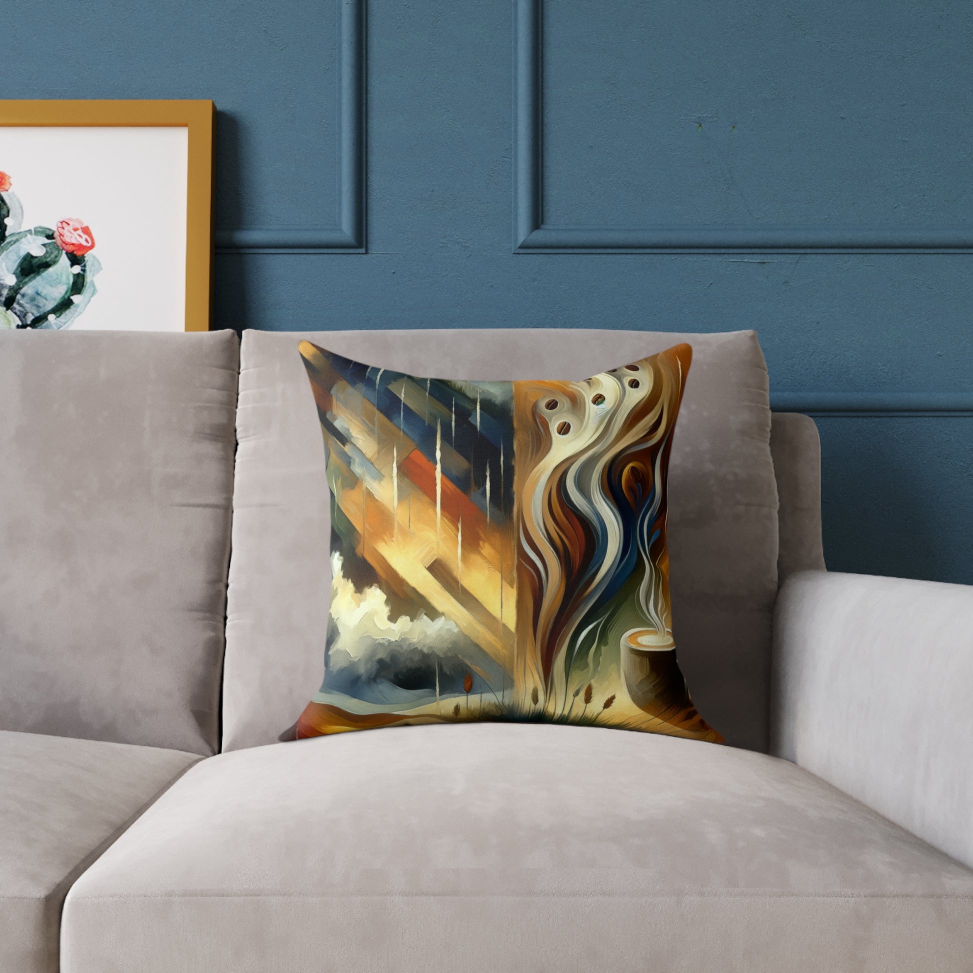 Transform your living space with our "Aromatic Earth Encounter" Spun Polyester Pillow. This unique piece of home decor brings the beauty of nature into your home, allowing you to immerse yourself in the earthy scents and warmth of a freshly brewed cup of coffee. Made with 100% polyester canvas and filling, this pillow features a concealed zipper for a seamless look. The double-sided print showcases the intricate details of the painting, inviting contemplation of our interconnectedness with the environment. Available in 5 sizes, this customized pillow is sure to capture the eye of guests and elevate your mood every time you see it. Add a touch of natural beauty to your home with our "Aromatic Earth Encounter" Spun Polyester Pillow.