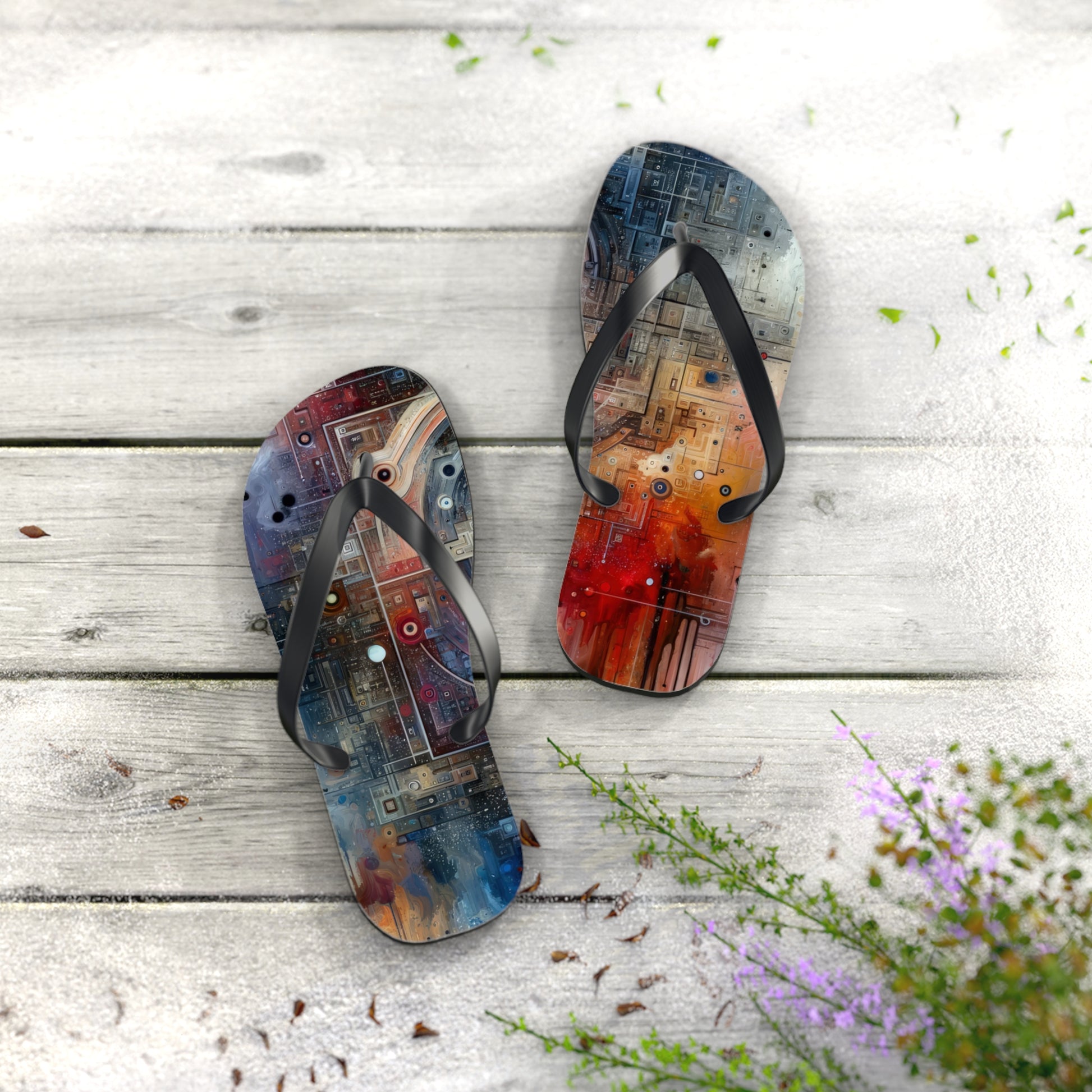 Embrace the beauty and complexity of awareness with our "Awareness Algorithm Tachism" personalized flip flops. Step into a world of creativity and inspiration with every step you take in these unique and thought-provoking flip flops.