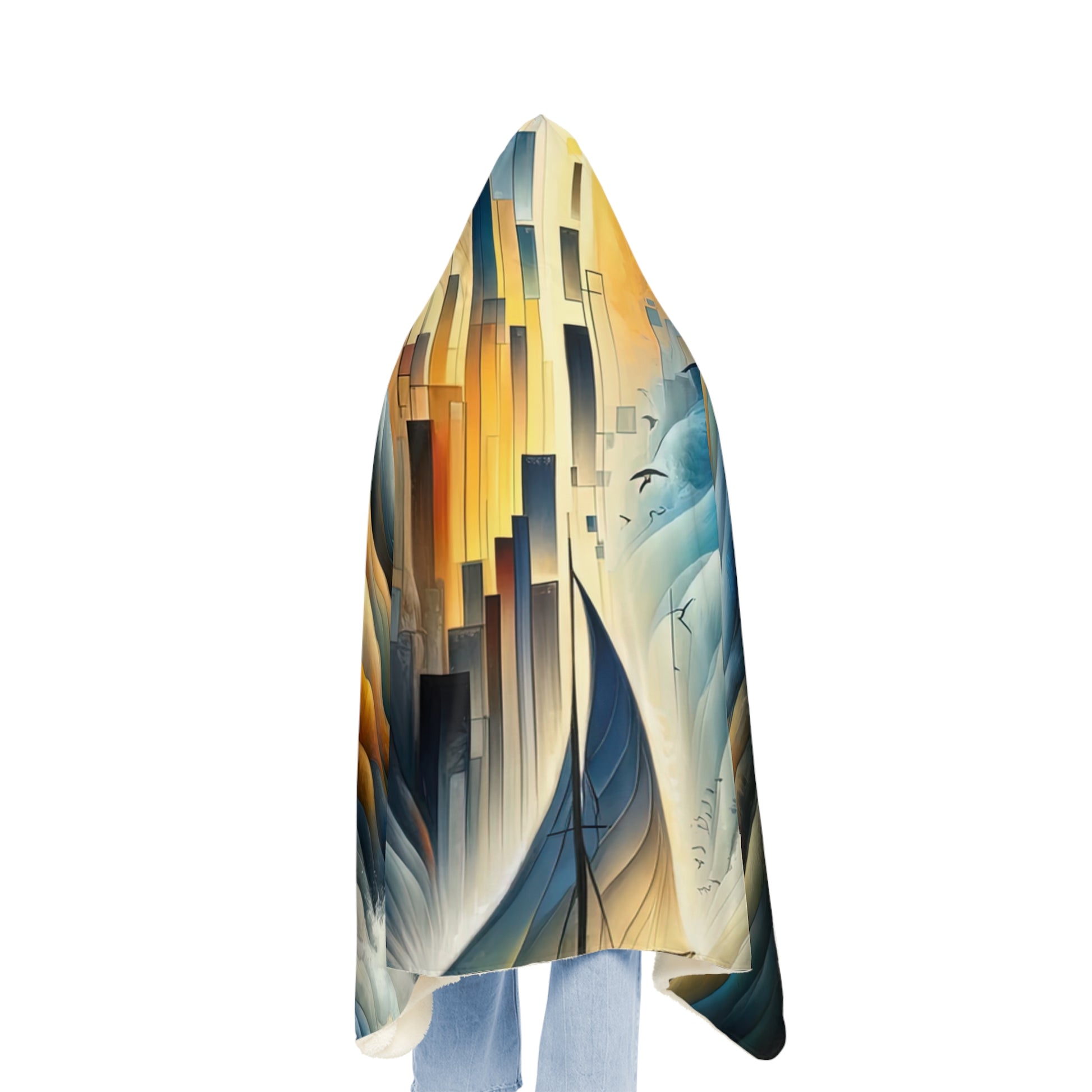 Wrap yourself in comfort and inspiration with our "Beacon Sail Change" Snuggle Blanket. This cozy hooded blanket is the perfect companion for lazy days at home, allowing you to stay warm and snug while surrounded by the vibrant colors and high resolution printing of the beautiful artwork. Made from 100% polyester micro-mink fabric, this blanket is durable and luxurious to the touch. Choose between the ultra soft microfleece or plush polyester sherpa lining options for added warmth and comfort. With elastic straps on the inside and a generous size of 80" x 55", this blanket is designed for ultimate relaxation. Let the message of unity, guidance, and transformation depicted in "Beacon Sail Change" inspire you as you sail towards a brighter future, enveloped in warmth and positivity.