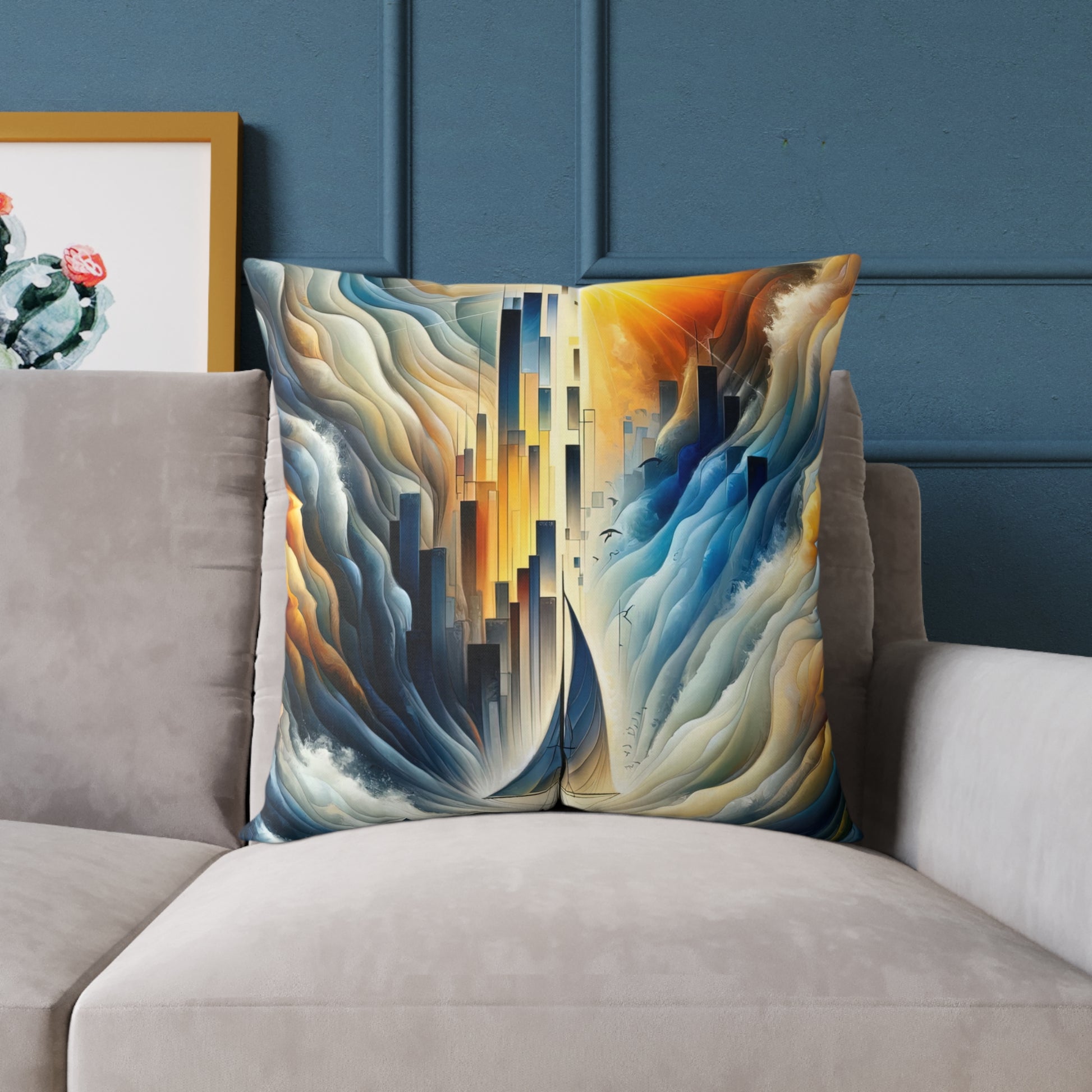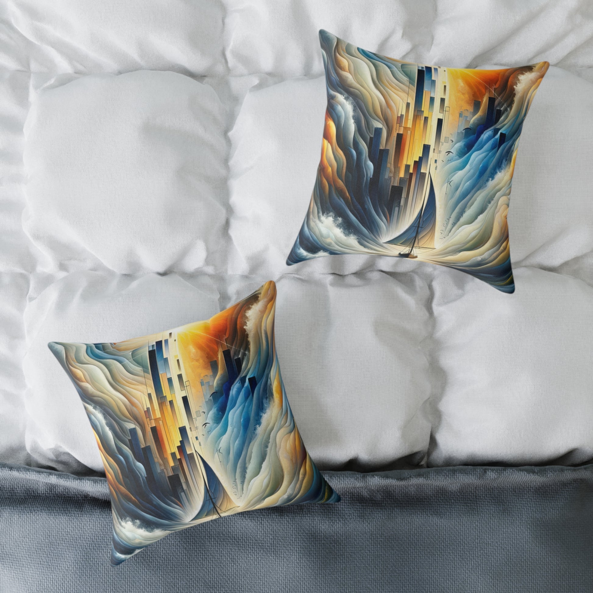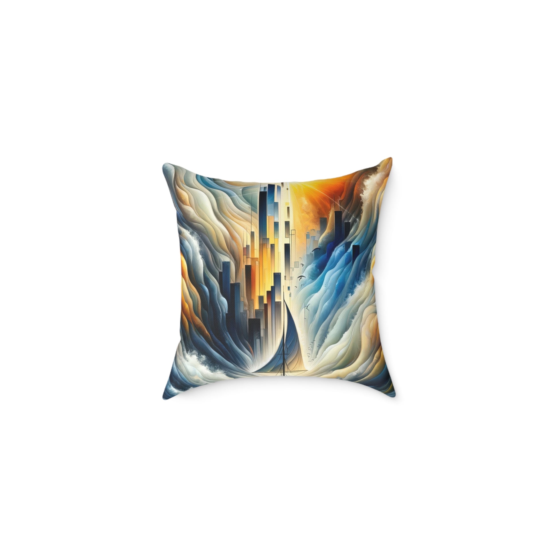 Elevate the ambiance of any living space with our personalized Spun Polyester Pillow featuring the captivating artwork "Beacon Sail Change". This striking design, with its dynamic brushstrokes and vibrant colors, embodies the spirit of embracing change and setting sail towards new horizons.