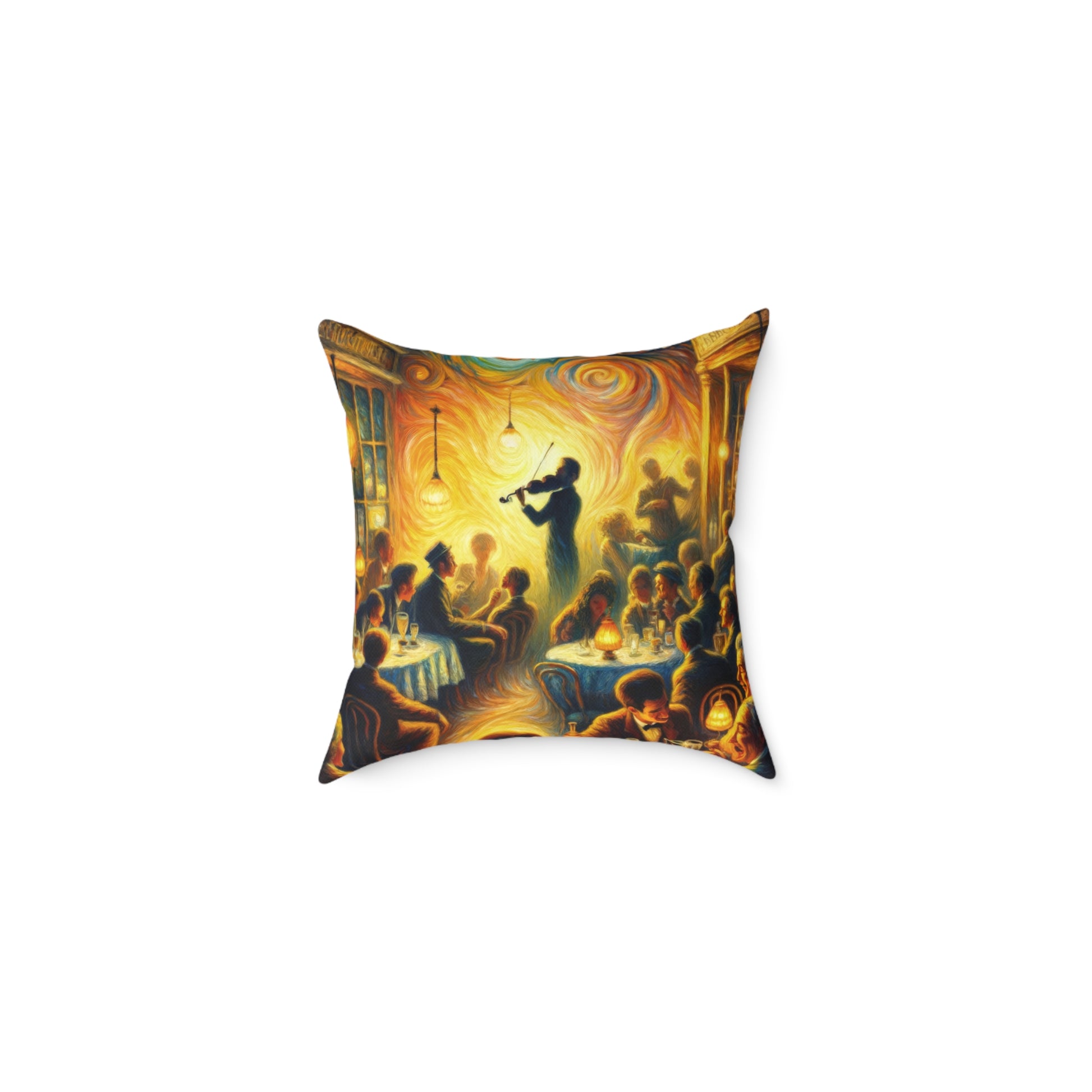 Transform your home decor with the vibrant and expressive "Bistro Emotive Entry" Spun Polyester Pillow. This customized pillow features a concealed zipper and is filled with 100% polyester for a plush and comfortable feel. The double-sided print showcases the beautiful and dynamic artwork, transporting you to the lively atmosphere of a bustling bistro. Perfect for adding a pop of color and personality to any room, this unique home decoration will capture the attention of guests and uplift your mood every time you see it. Available in five sizes, this pillow is a must-have for anyone looking to infuse their space with warmth, joy, and a touch of artistic flair. Made with 100% polyester canvas and sourced from China, this pillow is a high-quality and eye-catching addition to your home decor collection. Bring the spirit of the bistro into your home with this stunning and evocative pillow.