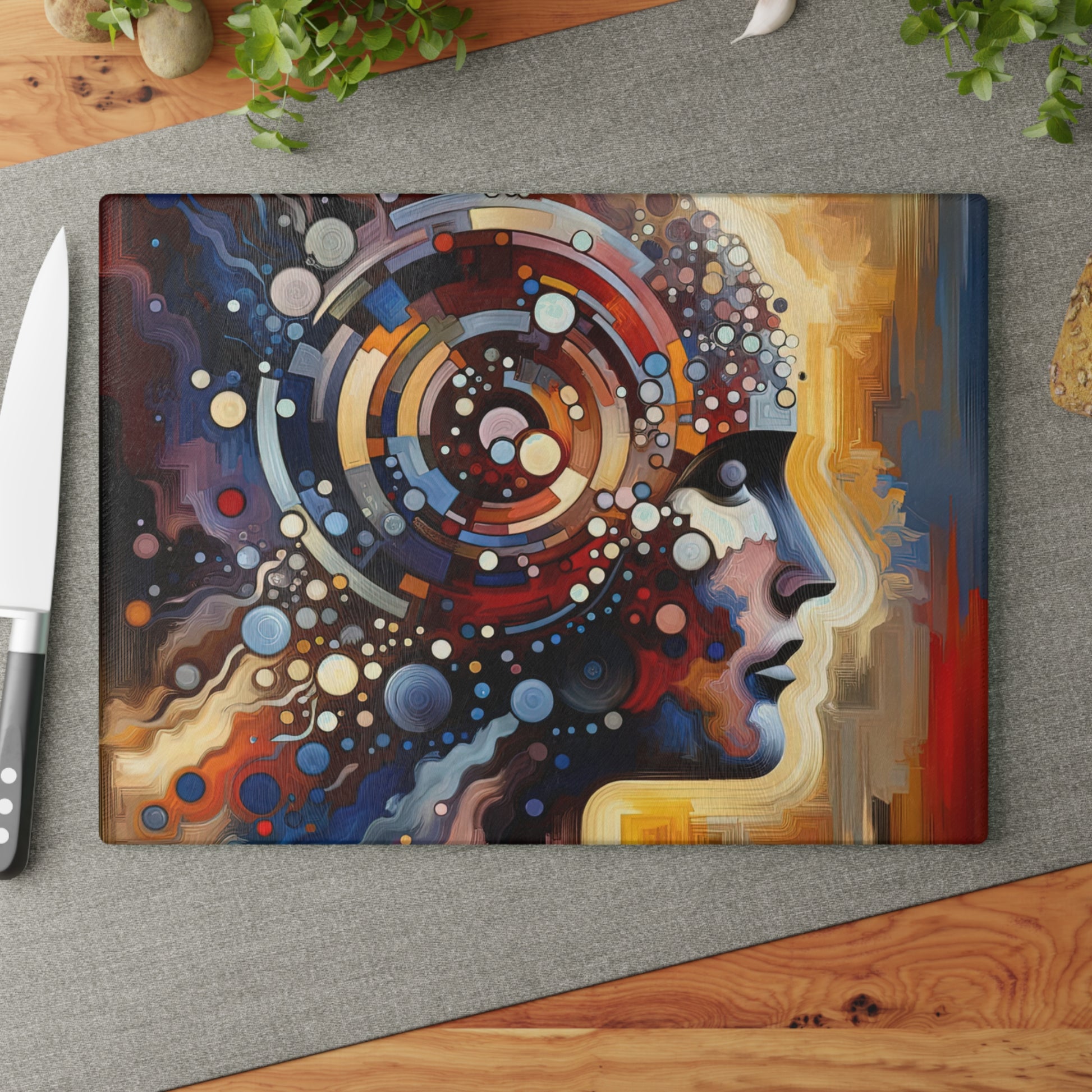 Elevate your kitchen decor with the striking and thought-provoking "Conscious Choices Harmony" glass cutting board. This custom cutting board features a vibrant design that invites contemplation on the power of our decisions and the interconnectedness of all beings. Made from sturdy tempered glass, this cutting board is perfect for chopping, slicing, and dicing your favorite ingredients. Available in two sizes, 8" x 11" and 11" x 15", this cutting board adds a touch of character to any kitchen with its textured surface and four rubber dots for stability. Bring awareness, compassion, and harmony to your cooking routine with this unique and inspirational piece. Hand wash recommended for long-lasting beauty.
