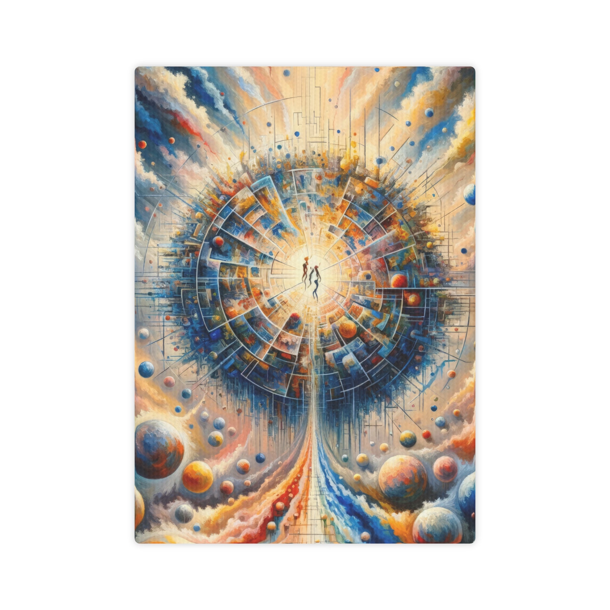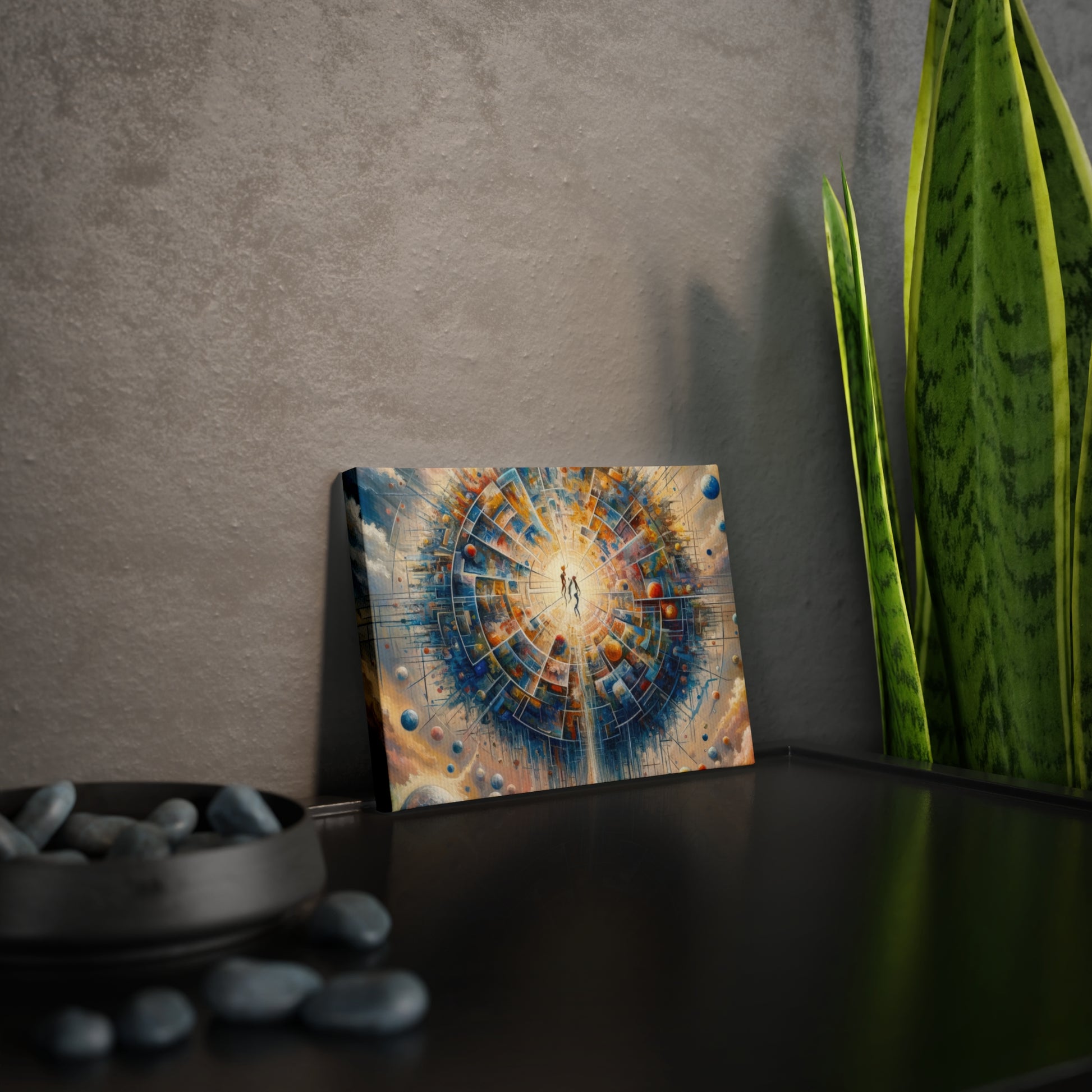 Elevate your space with the captivating and thought-provoking "Cosmic Connection Antidote" Canvas Photo Tile. This stunning piece features a mesmerizing blend of earthly greens and browns, symbolizing our interconnectedness with the universe. The shadowy figures reaching towards the focal point invite contemplation on our search for unity and belonging in a chaotic world.