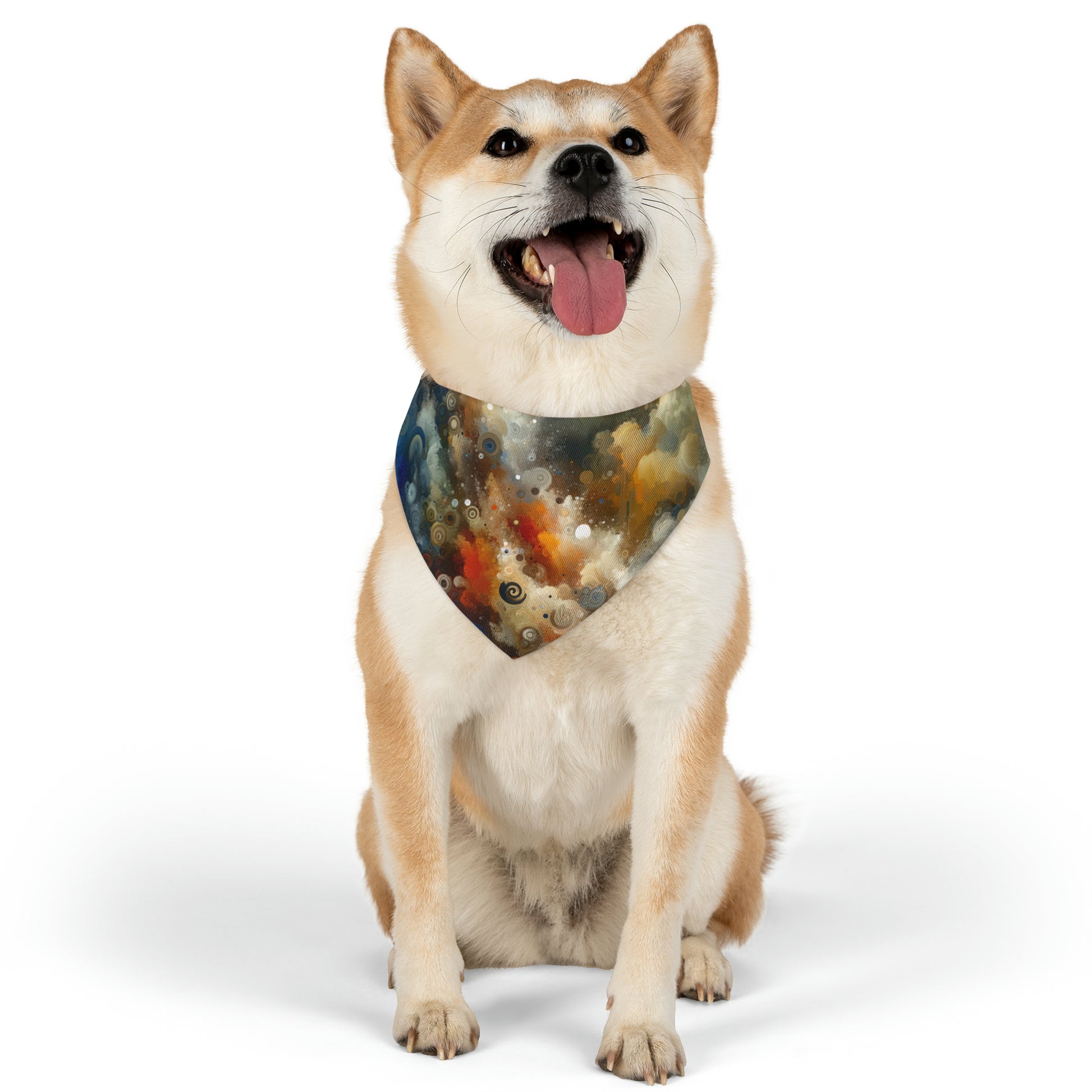 Made of durable polyester duck fabric, this pet bandana collar is designed for comfort and style. The sublimation printable one-sided print showcases the striking composition of warm and cool tones, energetic brushstrokes, and swirling patterns that symbolize the beauty and depth found in the passage of time.