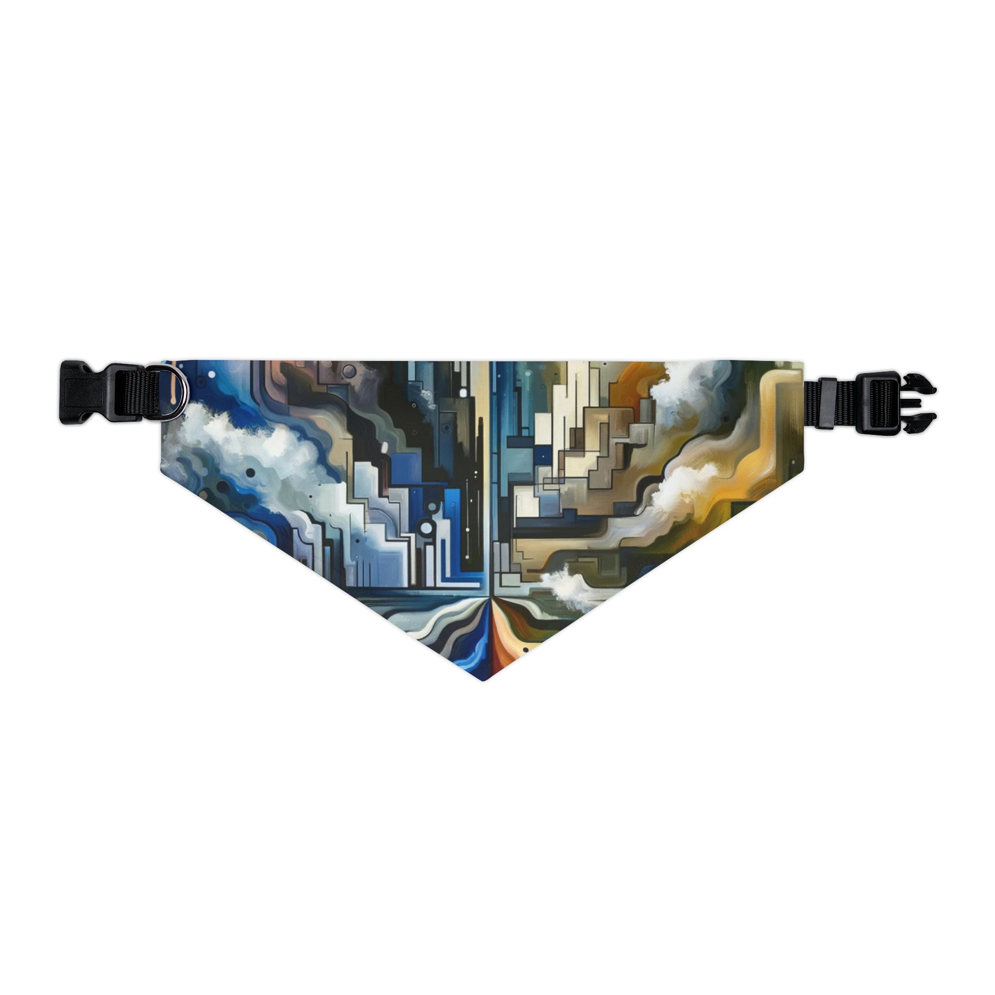 Made of durable polyester duck fabric, this bandana collar is designed for comfort and longevity. The sublimation printable surface allows the striking artwork to come to life in vivid colors, making it a truly eye-catching piece. The adjustable black collar with a plastic buckle ensures a secure and comfortable fit, perfect for any pet.