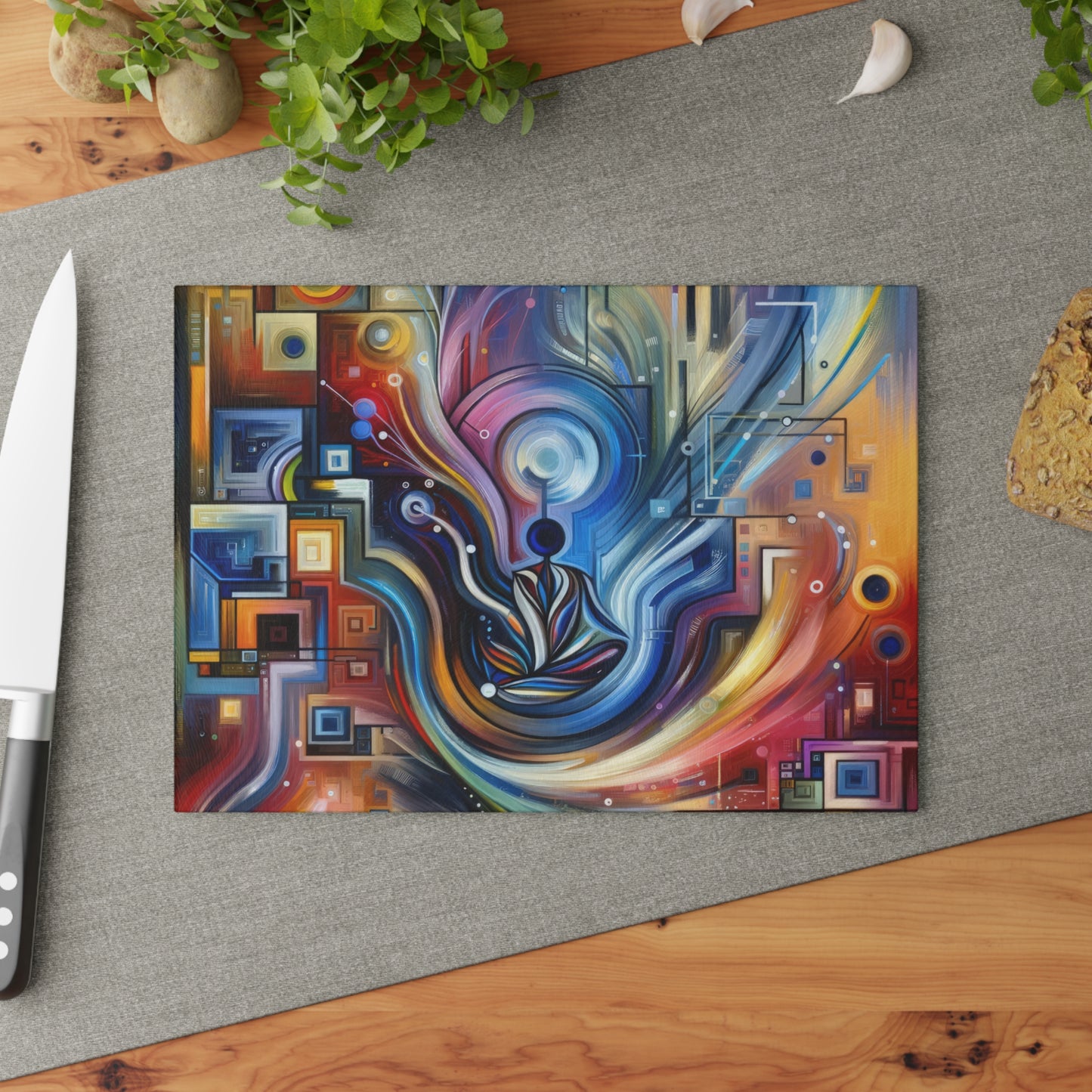 Bring a sense of peace and tranquility to your kitchen with our "Digital Mindfulness Abstract" Glass Cutting Board, making meal preparation a mindful and enjoyable experience.