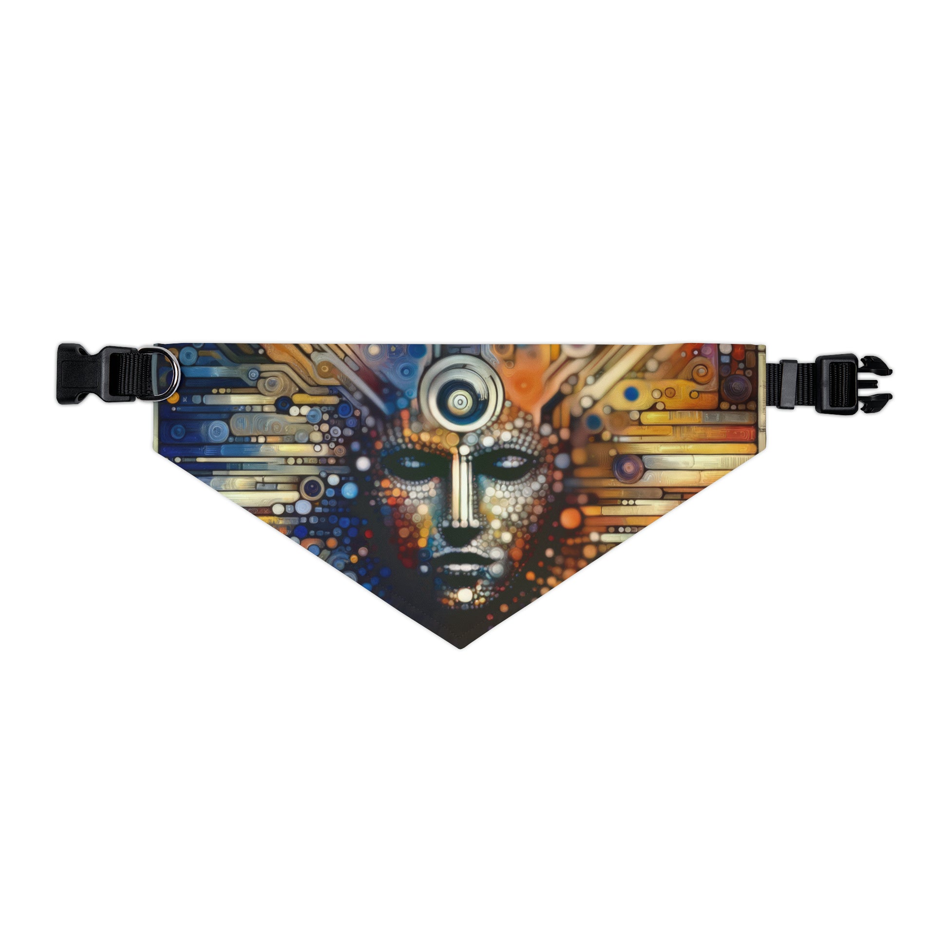 Elevate your pet's style with our unique and eye-catching Digital Rhythm Tapestry Pet Bandana Collar. This one-of-a-kind accessory combines intricate patterns and dynamic movement to create a harmonious balance between the digital world and spiritual resonance. Made of durable polyester duck fabric, this bandana collar is sublimation printable on one side, allowing for a customized look that will make your furry friend stand out. The adjustable black collar with plastic buckle ensures a secure and comfortable fit, even during playtime. Available in four sizes to fit any pet, this pet bandana collar is not only fashionable but also practical, as it is machine washable for easy care. Treat your pet to a stylish and meaningful accessory with our Digital Rhythm Tapestry Pet Bandana Collar.
