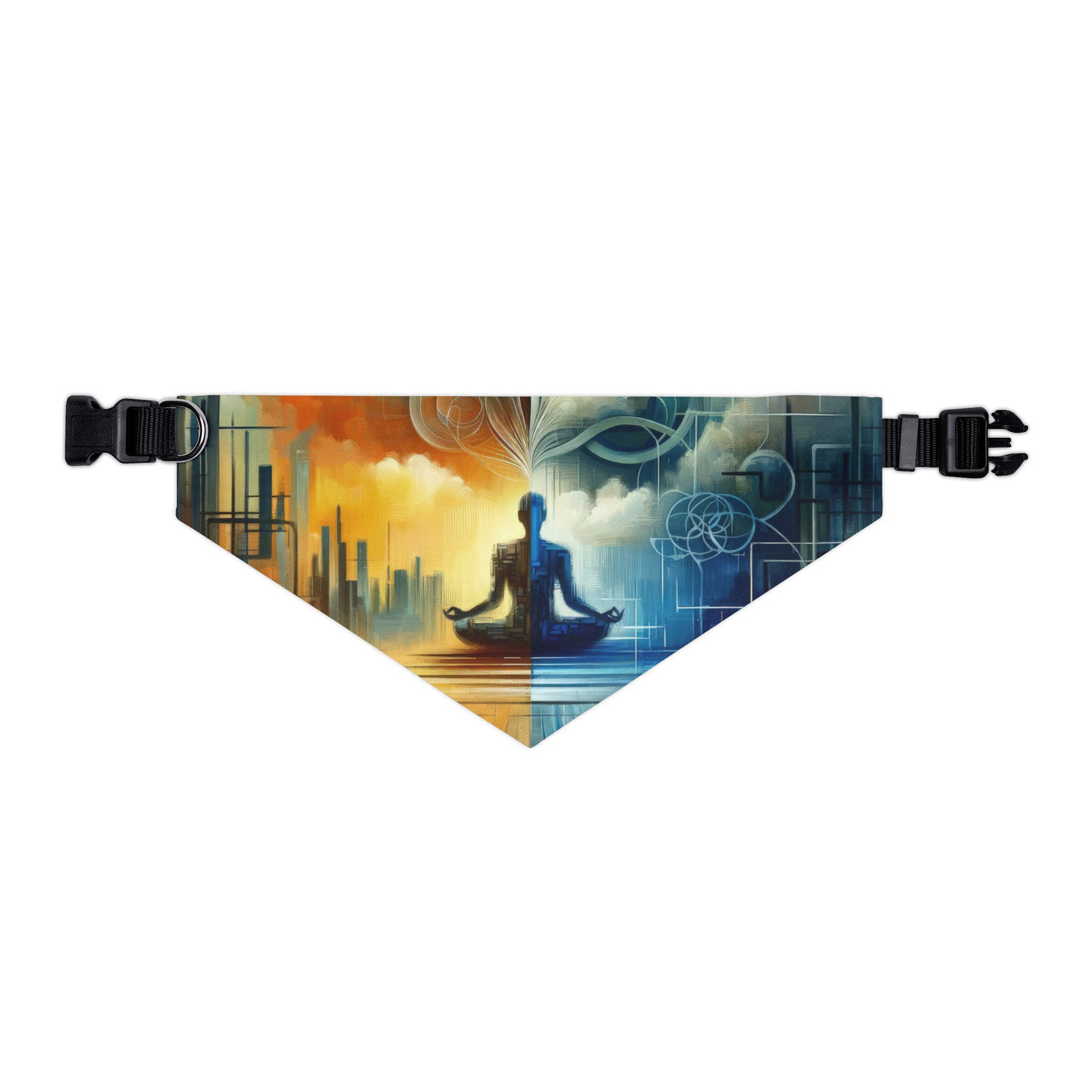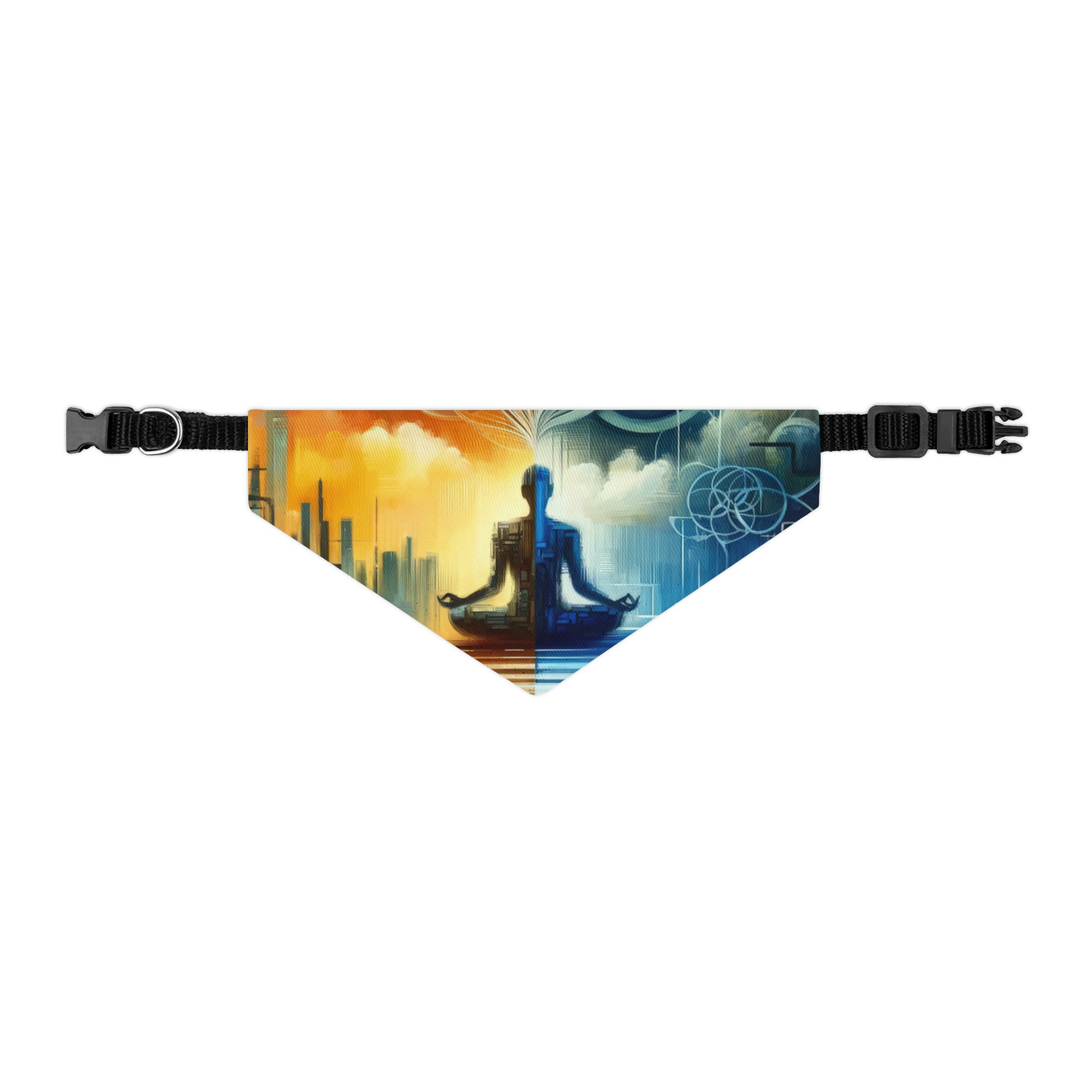 Elevate your pet's style with our unique Digital Spiritual Journey Pet Bandana Collar. This eye-catching accessory combines vibrant colors and a dynamic composition to create a visual metaphor for the ever-changing landscape of technology and spirituality. As you navigate the fast-paced digital world with your furry friend by your side, this bandana collar serves as a reminder to find moments of stillness and introspection.