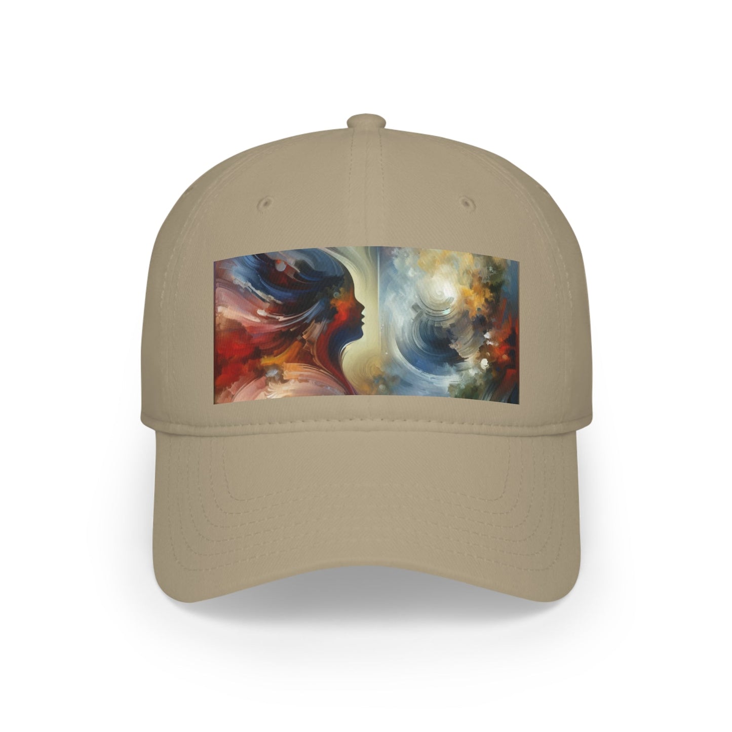 Step up your style game with the "Embracing Sovereign Reflectivity" Low Profile Baseball Cap. Made with 100% cotton twill, this structured cap features a low-profile design that is both timeless and on-trend. The vibrant colors and dynamic composition of the artwork invite viewers to contemplate their individual identity and interconnectedness with the world around them.