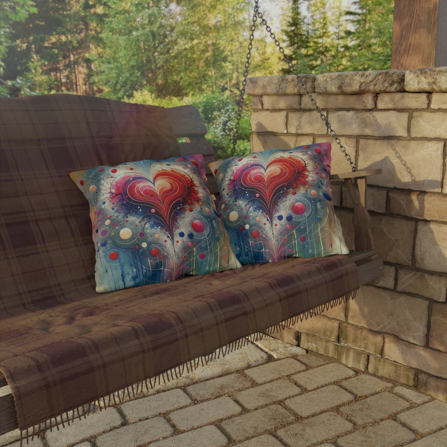 Elevate your outdoor decor with our stunning "Emotional Physics Heart" custom outdoor pillows. Featuring a vibrant and thought-provoking design that explores the intersection of emotions and the universe, these pillows are the perfect aesthetic uplift your patio or outdoor space needs. Made from 100% Spun Polyester, these pillows are UV-resistant, ensuring that the vibrant colors stay vivid for a long time. Their water and mildew-resistant nature make them ideal for carefree decorating, while the double-sided print and sewn seam closure add a touch of elegance. Available in 4 sizes, these custom outdoor pillows are sure to bring a pop of color and intrigue to your outdoor oasis. Add a touch of artistic beauty to your outdoor space with our "Emotional Physics Heart" pillows today.
