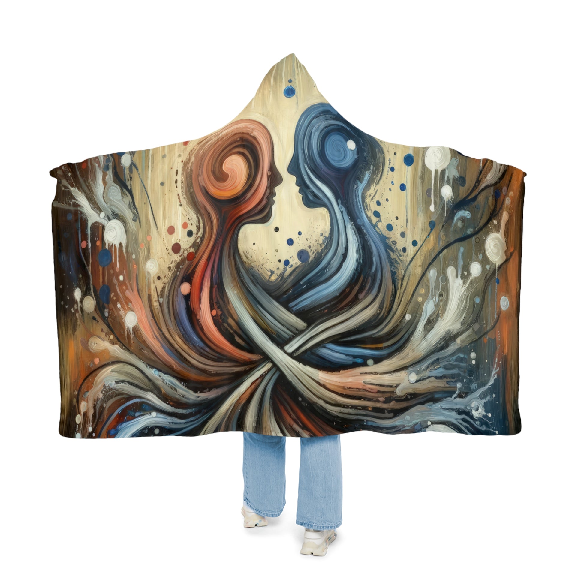 Wrap yourself in comfort and empathy with our "Empathic Connection Tachism" Snuggle Blanket. This cozy hooded blanket is perfect for staying warm and snug all day long, with its incredibly soft and durable 100% polyester fabric. The vibrant colors and high-resolution print of the artwork beautifully capture the essence of emotional connection and understanding.