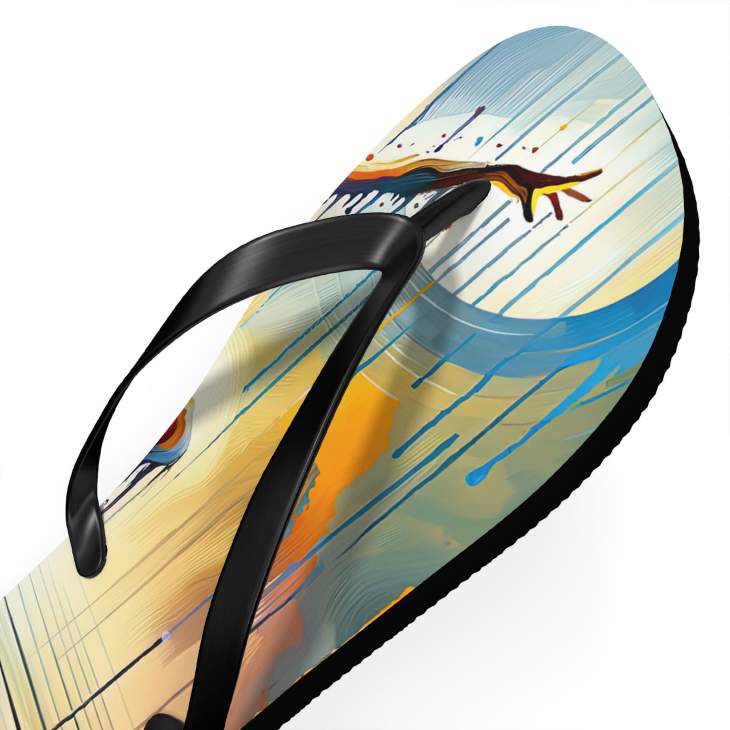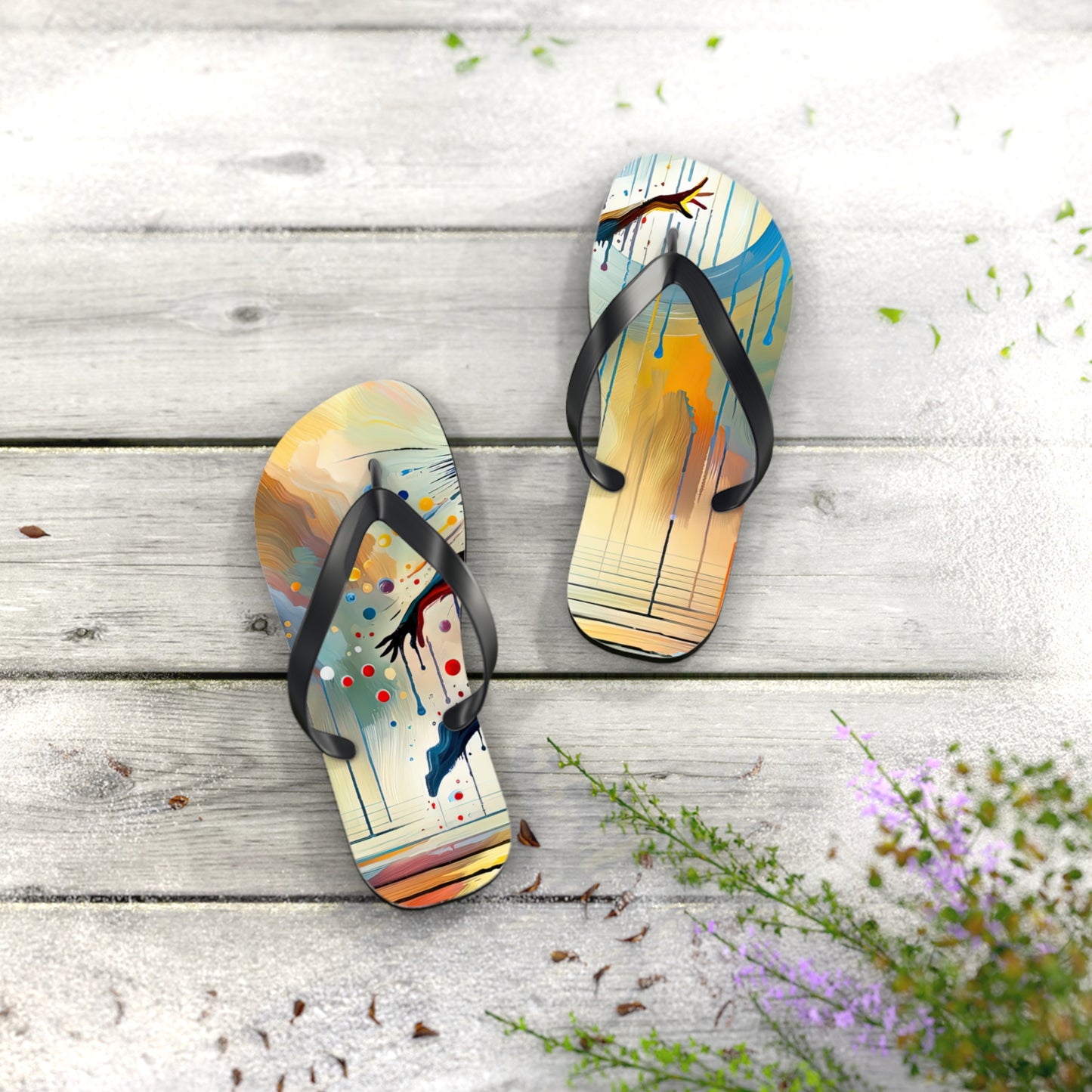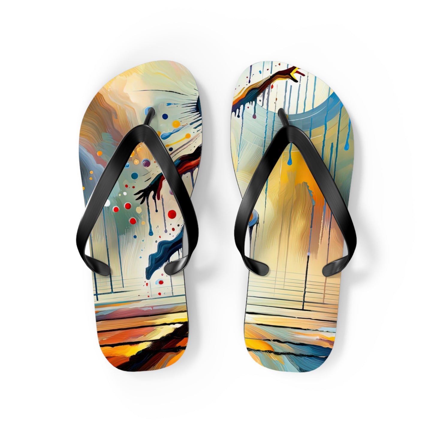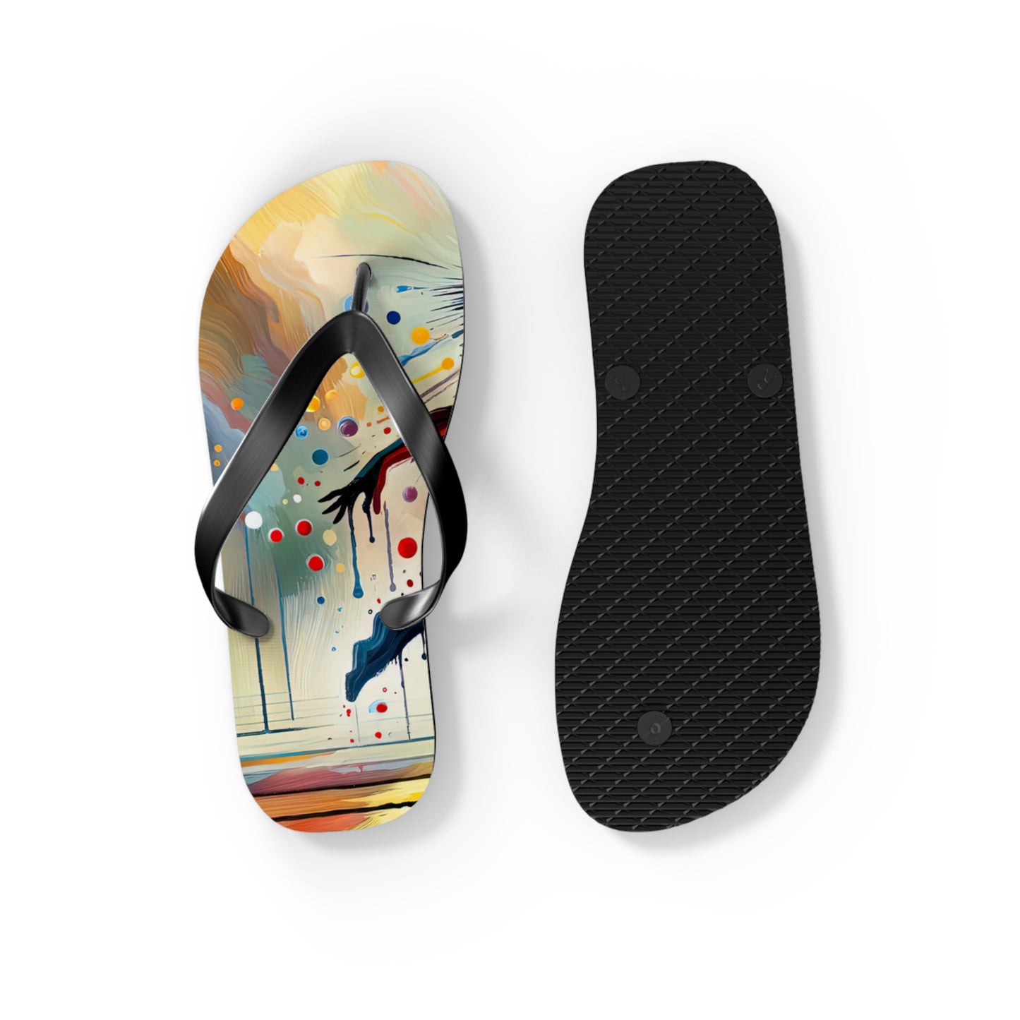 Step into summer with style and comfort with our "Expressive Dance Reflection" personalized flip flops. These flip flops are not just footwear, but a celebration of the beauty and power of expressive arts. The vibrant colors and dynamic composition of the artwork encapsulate the passion and energy of dance, reminding you to embrace the joy of movement and mindfulness as you navigate through life.