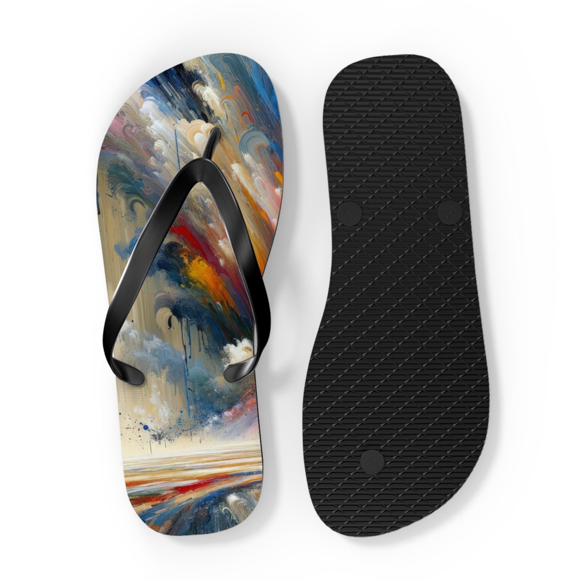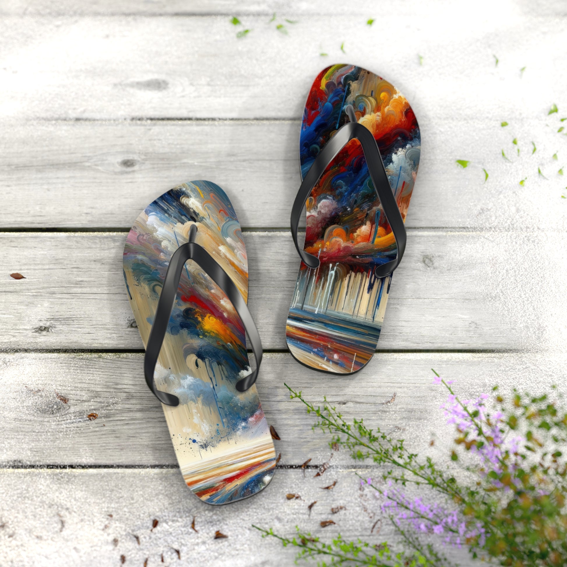 Step into summer with style and comfort with our Grandiose Transformation Tachism flip flops! Embrace the beauty of change with this vibrant and captivating artwork that celebrates the essence of tachism. The dynamic composition and vivid colors invite contemplation of transformation and growth, while the easy slip-on design and cushioned footbed ensure all-day comfort for your summer escapades.