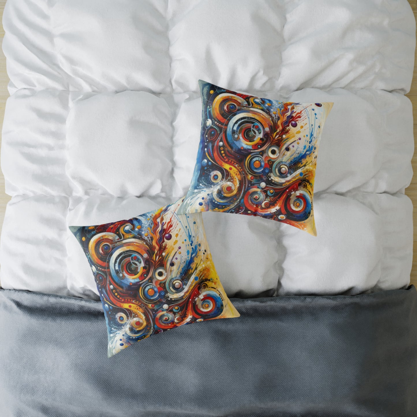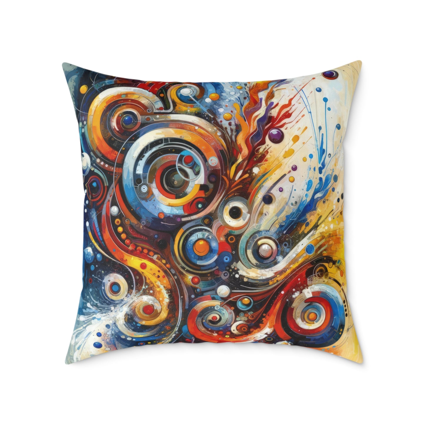 Elevate your home decor with our "Harmonic Abstract Synergy" Spun Polyester Pillow, featuring a mesmerizing design that embodies unity and balance. This unique piece showcases the artist's skillful use of color, shape, and movement, creating a visually stunning and cohesive artwork that will captivate all who see it. The pillow is made from 100% polyester canvas and comes already filled with plush polyester filling, ensuring both comfort and style. With a concealed zipper for a seamless look, this double-sided print pillow is available in five sizes to suit any space. Bring a touch of dynamic energy and harmony into your home with this one-of-a-kind piece that is sure to uplift your surroundings and cheer your mood. Add your art to create a personalized home decoration that will capture the eye of guests and make a statement in any room.