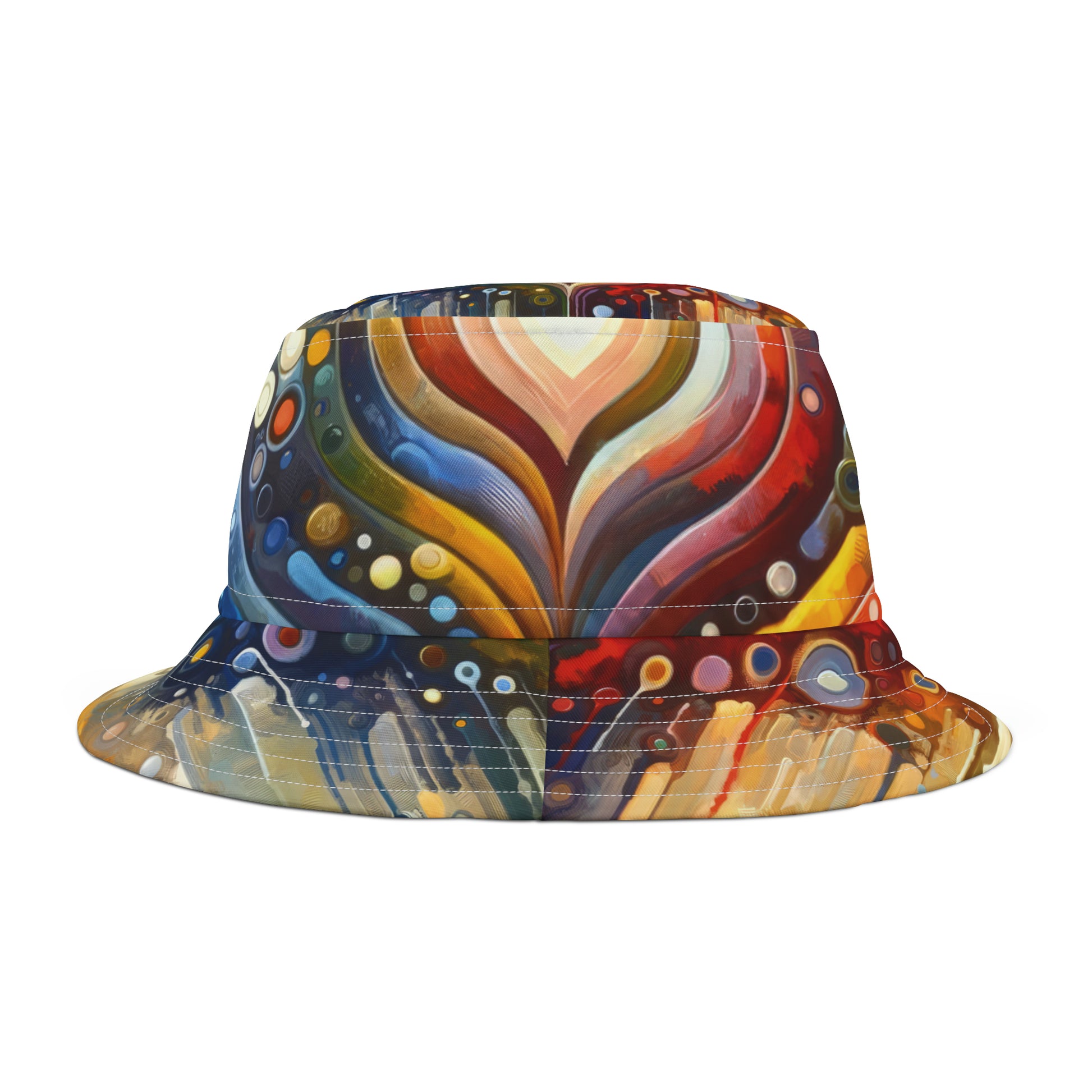 Elevate your style with our personalized Bucket Hat featuring the captivating artwork of "Harmonic Heart Essence." Crafted from 100% polyester, this modern wardrobe staple is not only stylish but also functional, just like its humble origins as a rain protector for fishermen in the 1900s. Available in two sizes and with two stitching color options, this bucket hat allows you to showcase your unique personality and flair. The sewn-in label adds a touch of authenticity, while the Made in USA quality ensures durability and comfort. Embrace the interconnectedness and balance depicted in the artwork, and bring a harmonious touch to your ensemble with our "Harmonic Heart Essence" Bucket Hat.