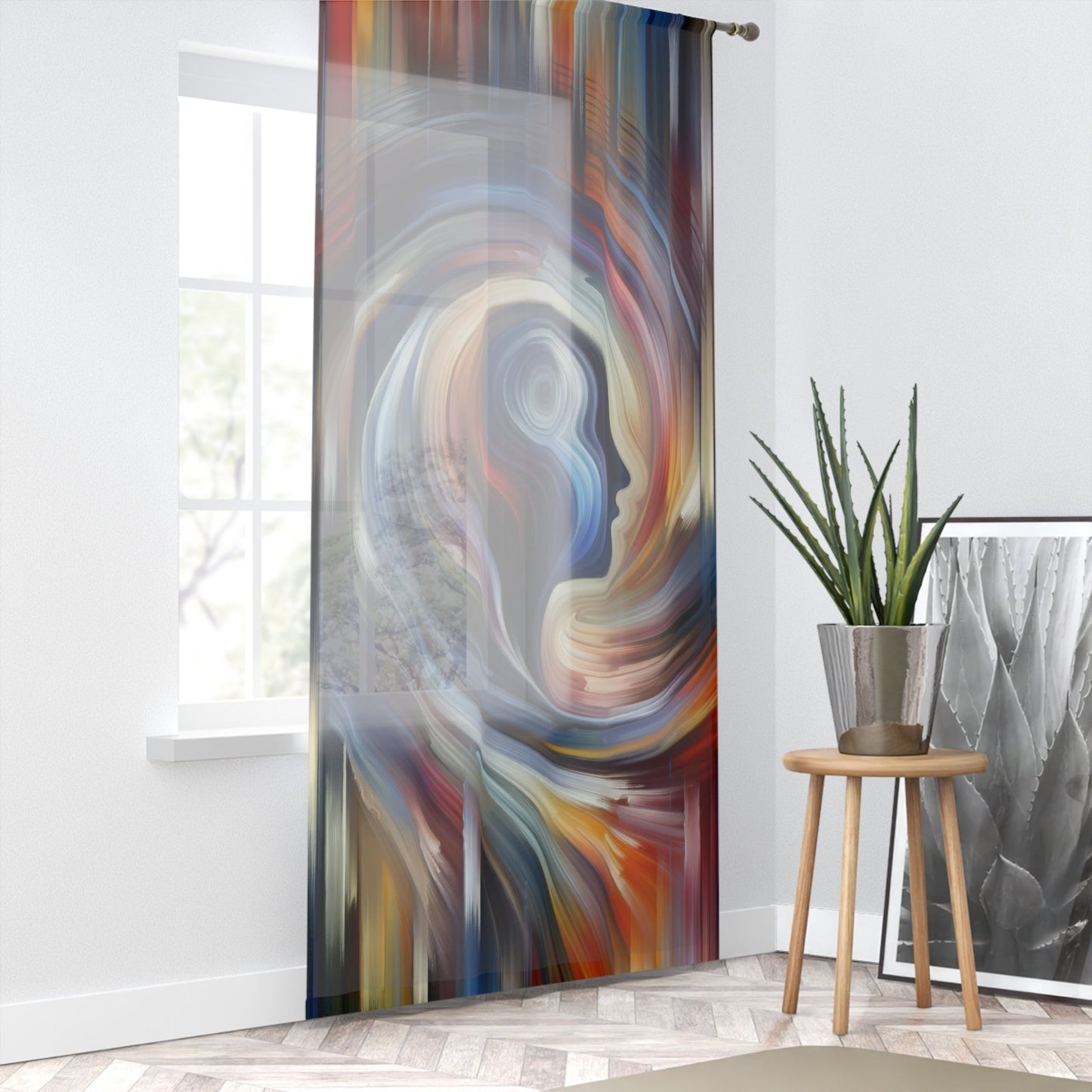 The seamless blend of colors symbolizes your ability to integrate and accept all aspects of your inner world, resulting in a harmonious mindset that radiates peace and stability. As light filters through the somewhat transparent fabric, it softly illuminates your space, enhancing the ambiance of your room with an elegant touch.