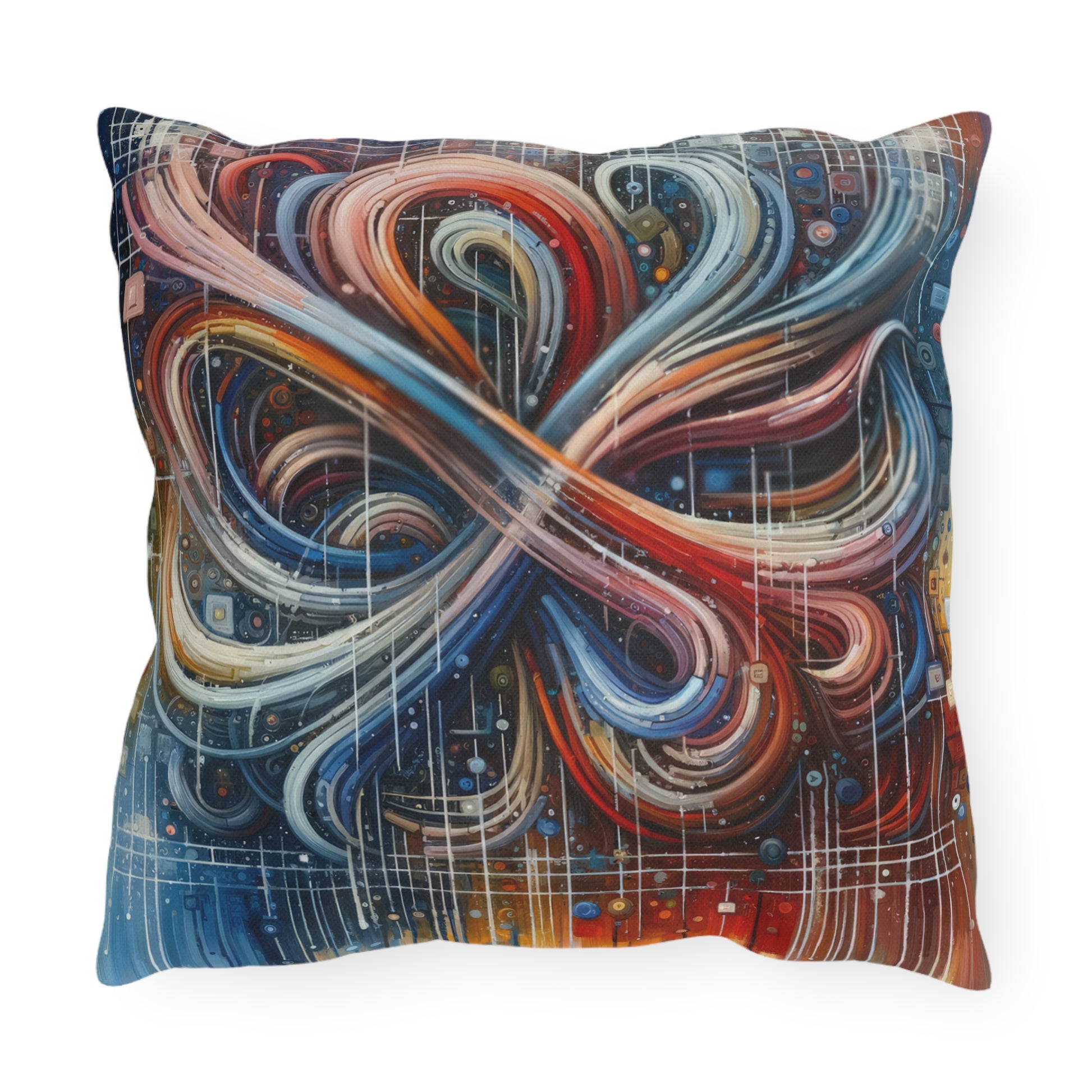 Perfect for adding a pop of color and a touch of artistry to your patio or outdoor seating area, these pillows are water and mildew-resistant, making them easy to care for and perfect for any outdoor setting. The double-sided print features the mesmerizing composition of the Humanity Tapestry Unification painting, inviting you to reflect on the interconnectedness of all individuals and the potential for collaboration and harmony within society.