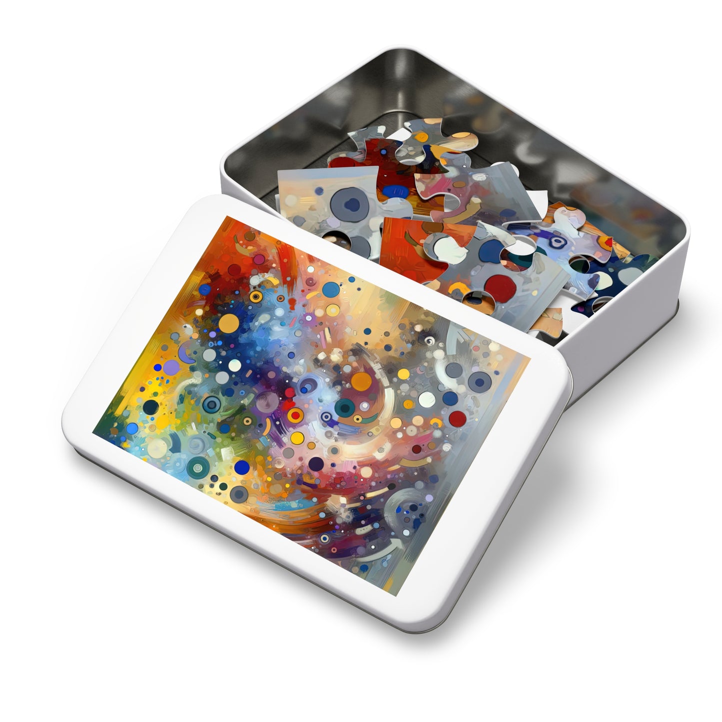 Enter the world of "Humorous Unified Tachism" with this vibrant and joyful jigsaw puzzle! This personalized puzzle is the perfect way to unwind and connect with friends and family, as you piece together the colorful tapestry of humor and unity depicted in the artwork. Made with high-quality chipboard pieces, this puzzle comes in 30, 110, 252, 500, and 1000-piece variations to suit puzzlers of all ages and skill levels. The 252 and 500-piece puzzles are ideal for children aged 9 and up, while the 1000-piece puzzle provides a challenge for adults. Each puzzle comes in a gift-ready metal box, featuring the finished image on the cover for a show-stopping presentation. Whether you're a seasoned puzzler or just starting out, this "Humorous Unified Tachism" jigsaw puzzle is sure to bring laughter and connection to your next puzzle night. Ages 4+ (choking hazard). A perfect combination of whimsy and fun for all to enjoy!
