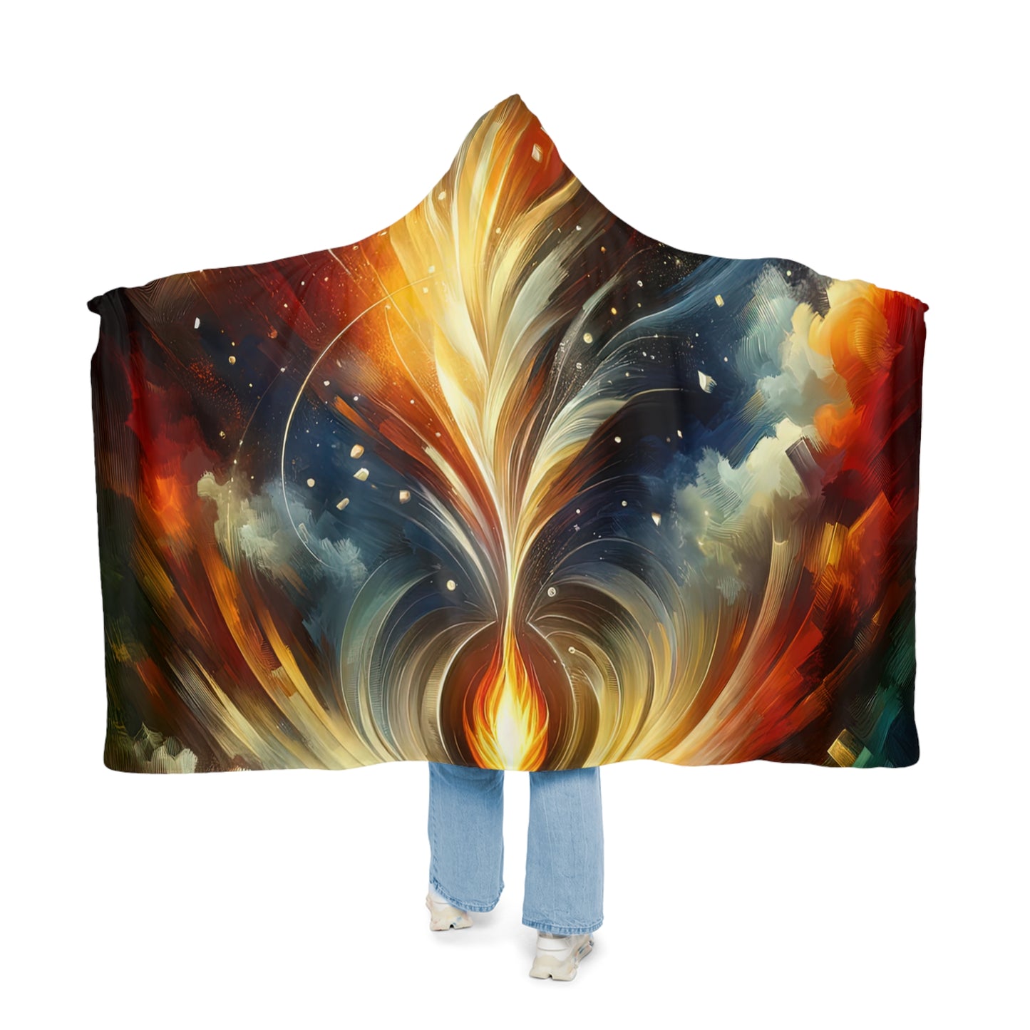 Wrap yourself in warmth and comfort with our "Igniting Transformational Currents" hooded blanket. Made from 100% polyester micro-mink outer fabric, this blanket is incredibly soft and durable for all-day cozy wear. The vibrant colors and high-resolution print of the transformative artwork will inspire and uplift you as you snuggle up at home. Choose between the ultra-soft microfleece or plush polyester sherpa lining options for added coziness. With a generous size of 80" x 55", elastic straps for a secure fit, and a one-of-a-kind design, this blanket is perfect for lounging, relaxing, and igniting your own personal transformation. Embrace the energy, passion, and momentum of positive change with this unique and inspiring hooded blanket.