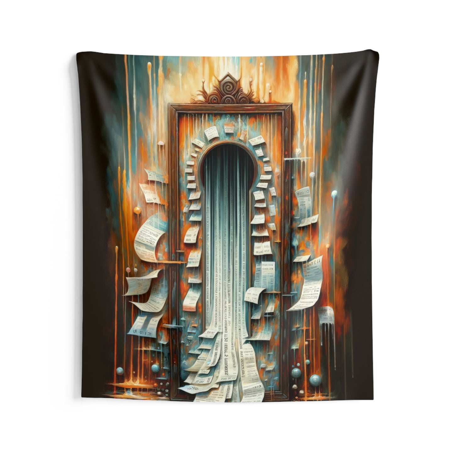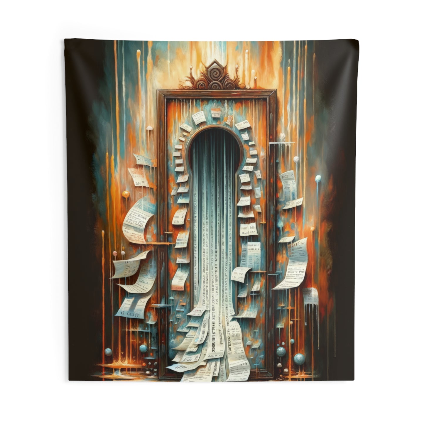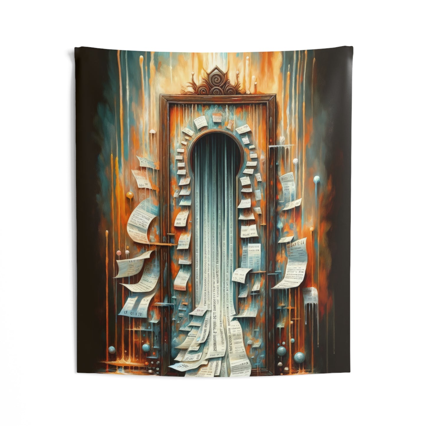Available in multiple sizes (26x36'', 50x60'', 68''x80'', 88''x104''), this wall tapestry is a versatile and stylish addition to your home decor. Embrace the complexity of your inner world and embark on a journey of introspection with the "Illuminated Truths Mirror" Indoor Wall Tapestry.