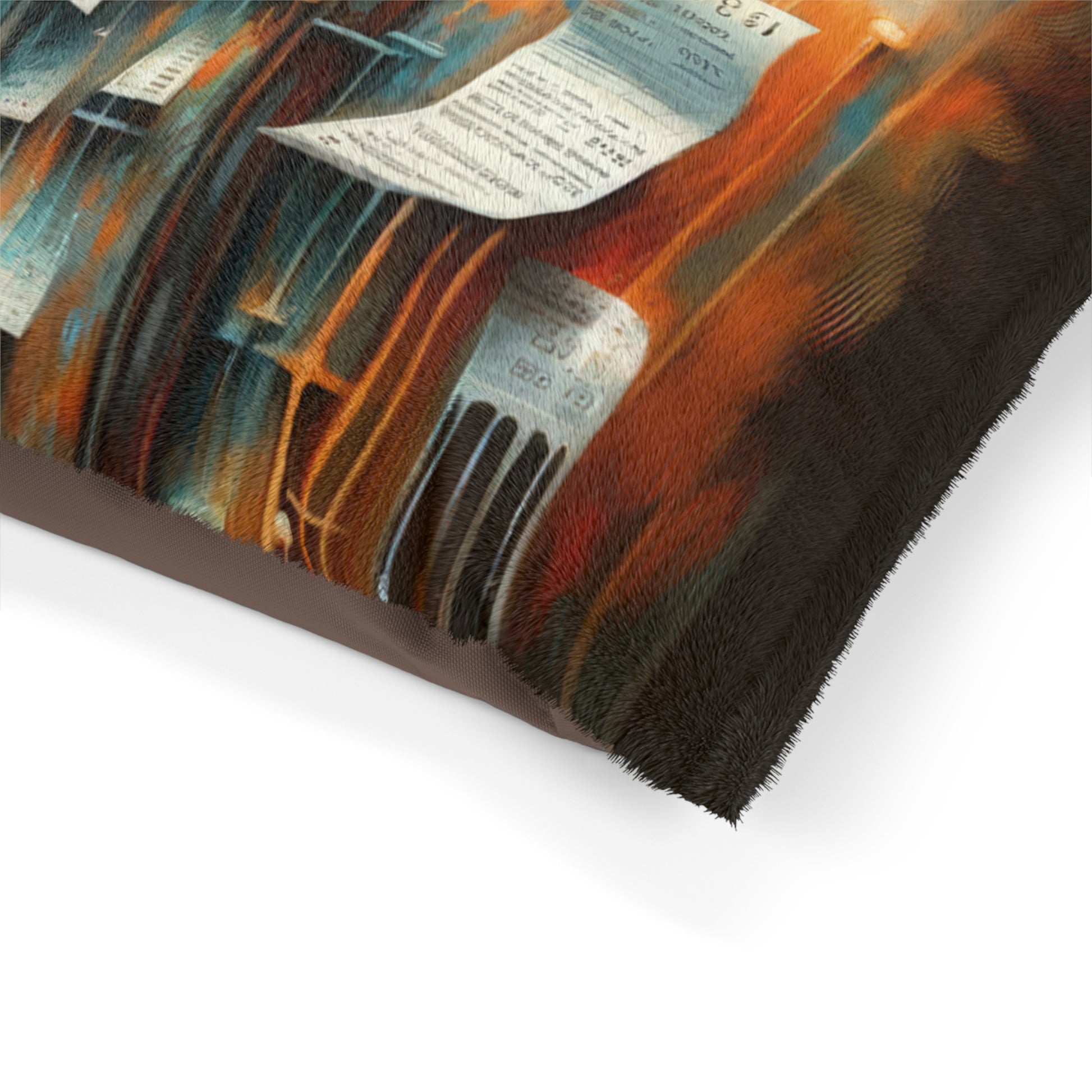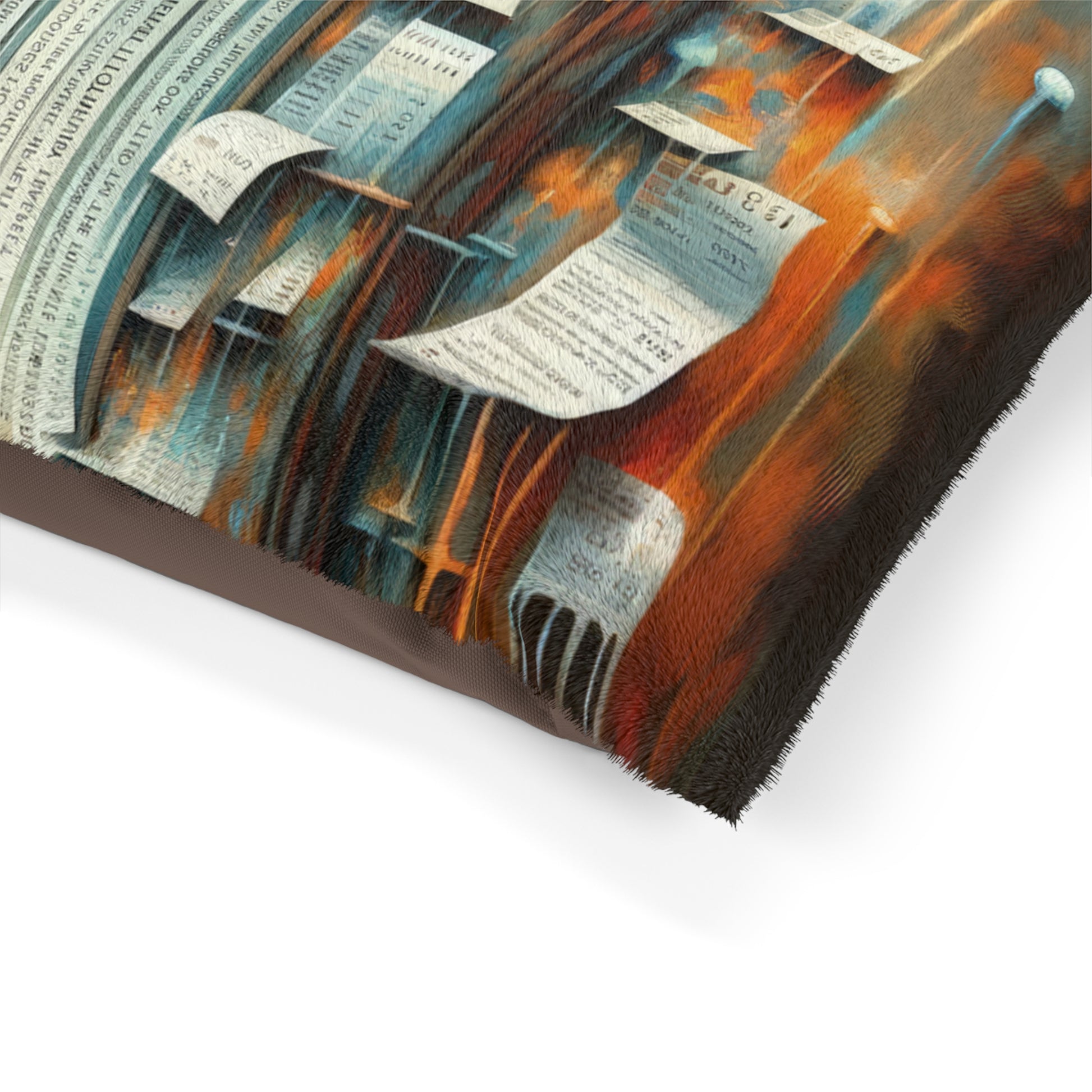 Introducing our "Illuminated Truths Mirror" Pet Bed, where your furry friend can lounge in comfort and style while surrounded by thought-provoking artwork. This pet bed features a feather soft fleece exterior that is printable on one side, with a dark brown zippered back and a shape-retaining insert for ultimate comfort. The underside is made of 100% cotton for added softness. Your beloved pet will have their own cozy nest to relax in, right at your feet.