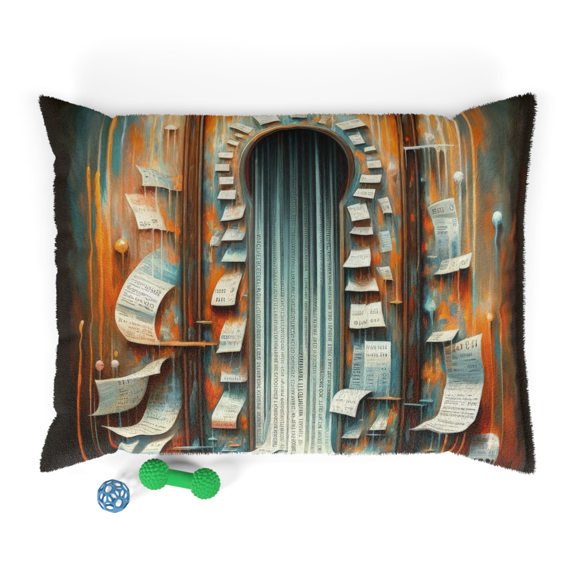 Inspired by the concept of self-discovery and enlightenment, the artwork on this pet bed encourages introspection and reflection. The contrasting elements of chaos and stillness, of scattering and converging knowledge, make this pet bed a unique and thought-provoking addition to your home decor. Available in sizes 28" × 18", 40" × 30", and 50" × 40", this pet bed is perfect for dogs of all sizes. Give your furry friend a place of their own with our "Illuminated Truths Mirror" Pet Bed, designed for indoor use only.