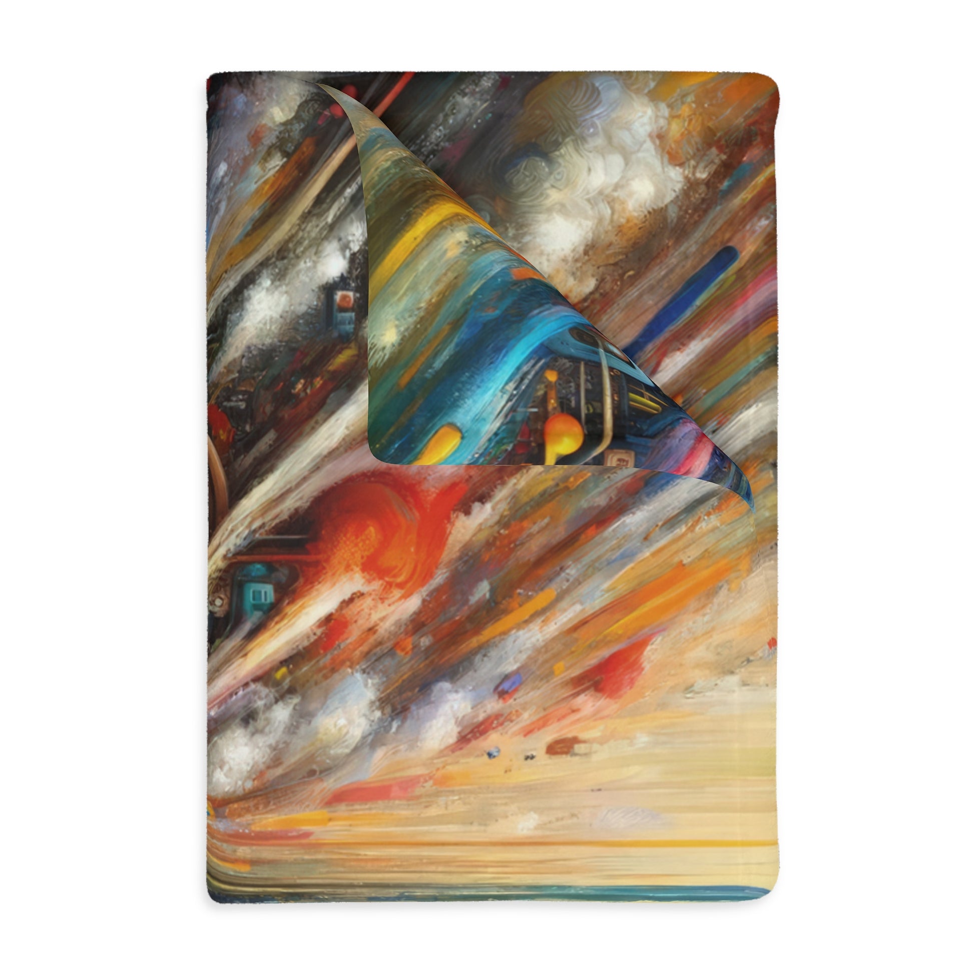 The two-sided print features the intricate and thought-provoking design of "Information Bottleneck Cascade," capturing the essence of information overload in a digital age. The artist's skillful use of texture and layering is beautifully showcased on this blanket, creating a sense of depth and movement that will draw viewers in.