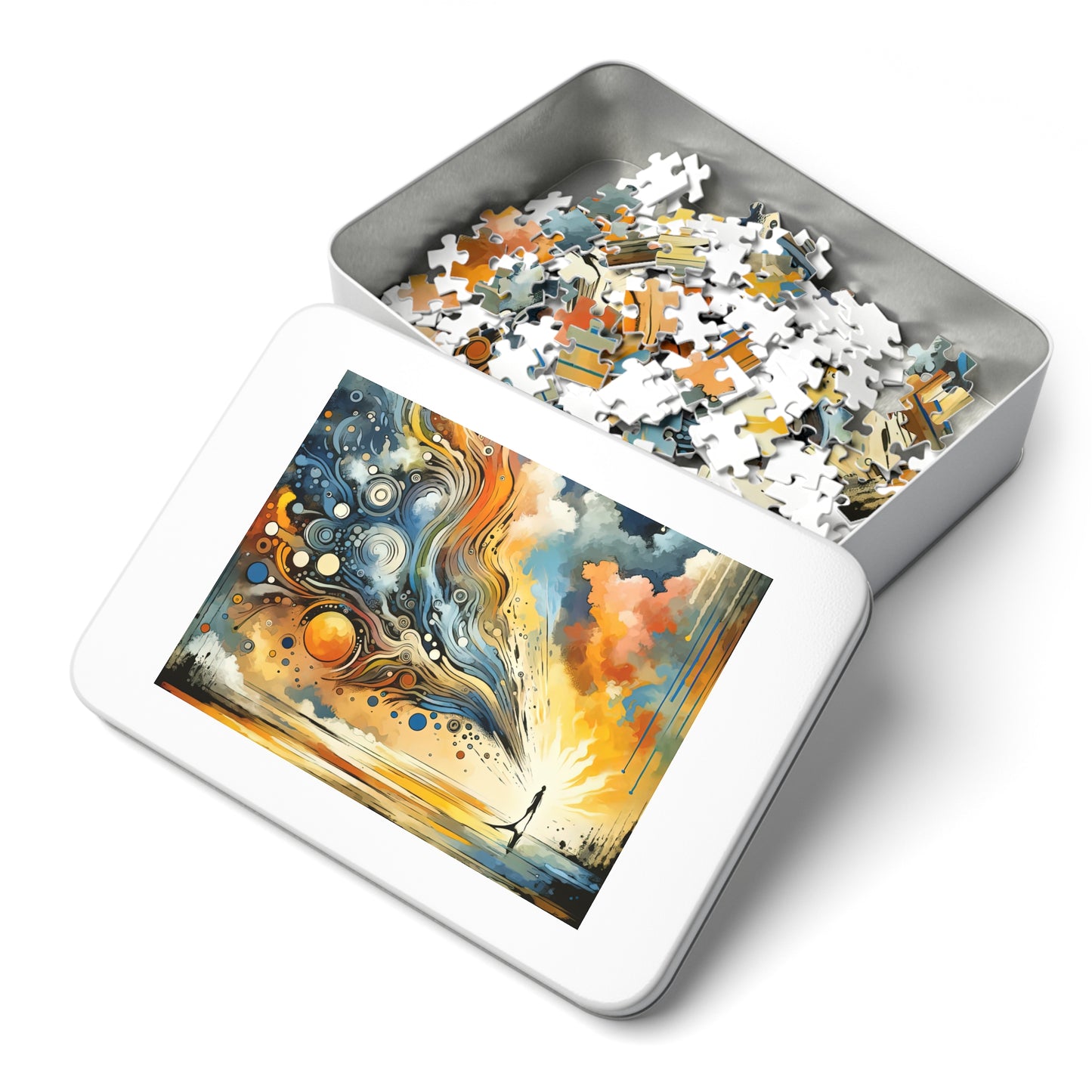 Embark on a journey of self-discovery and mindfulness with our "Intentional Awakening Reflection" jigsaw puzzle. This powerful and thought-provoking artwork captures the essence of connection with the universe, inviting you to contemplate the beauty and complexity of your inner world. Made with high-quality chipboard pieces, our puzzles come in 30, 110, 252, 500, and 1000-piece variations, perfect for children and adults alike. Delve into a world of vibrant colors, dynamic composition, and symbolic imagery as you piece together this puzzle, offering wholesome downtime for friends and family. Packaged in a gift-ready metal box, this puzzle makes for a show-stopping presentation. Embrace each day with intention, curiosity, and wonder as you connect with the interconnectedness of all things through this mesmerizing puzzle experience. Let the "Intentional Awakening Reflection" puzzle be your guide to growth and transformation. Suitable for ages 4 and up.