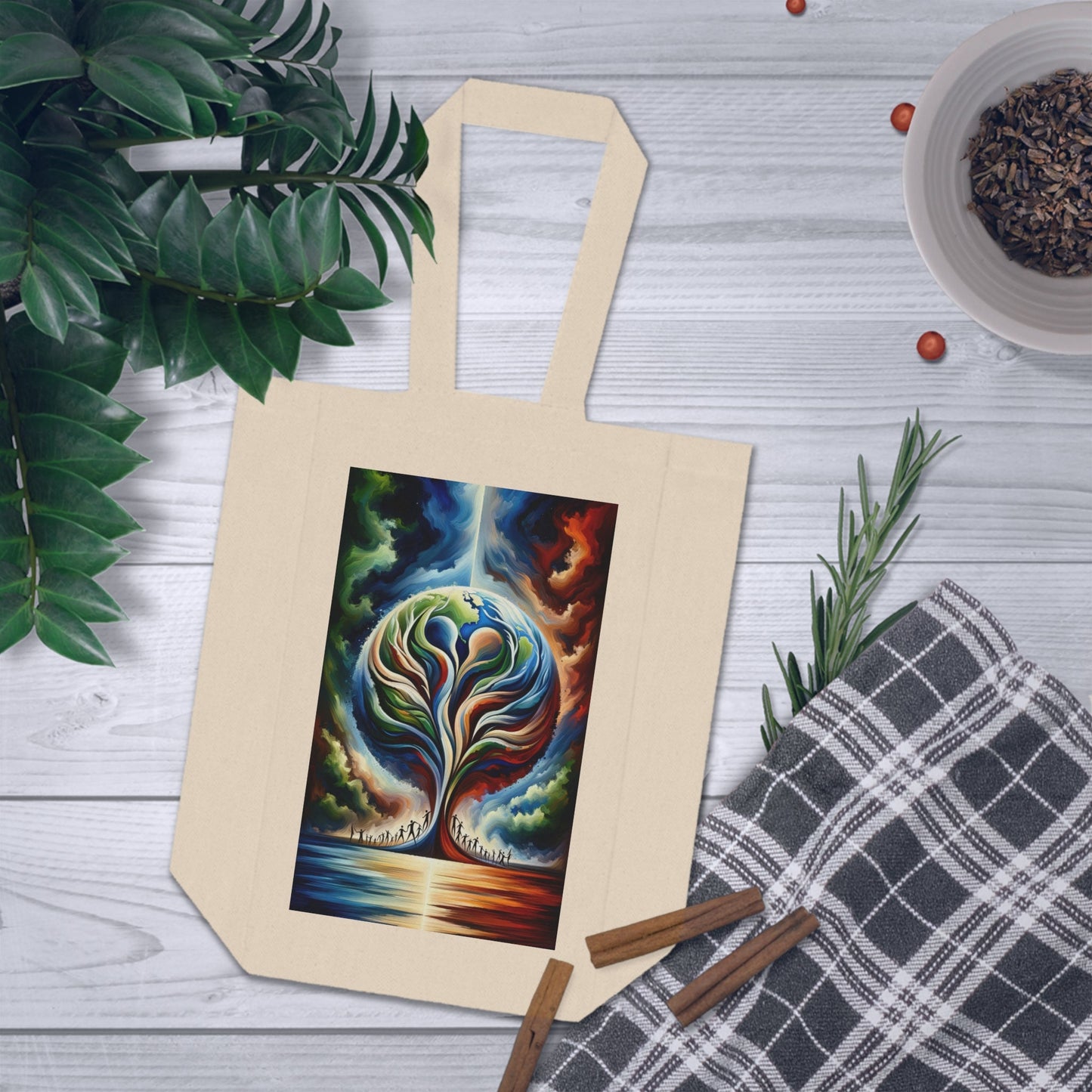 Add a touch of artistry and purpose to your wine-carrying essentials with our Double Wine Tote Bag featuring "Interconnected Earth Advocates". Embrace your role as a steward of the Earth and make a statement for sustainability every time you reach for this beautiful and practical tote.