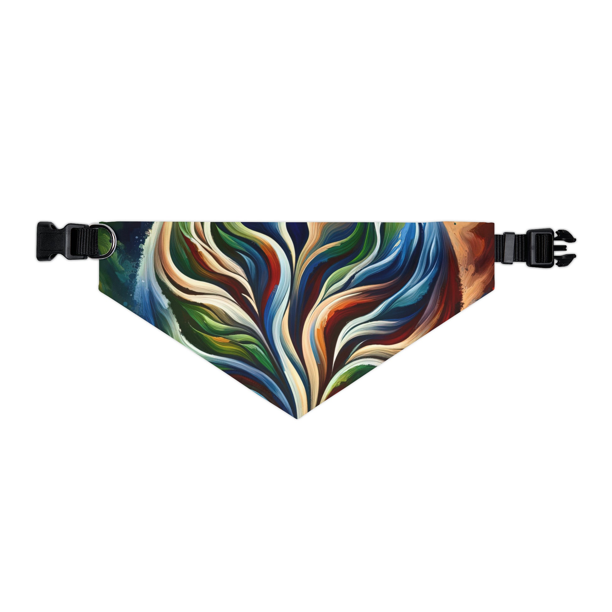 Embrace the message of unity, responsibility, and hope embodied in the "Interconnected Earth Advocates" artwork by adorning your furry friend with this eye-catching bandana collar. Let your pet join the movement towards sustainability, conservation, and respect for nature, and showcase your shared commitment to protecting our planet for future generations. Get your pet bandana collar today and make a statement for environmental advocacy with every walk and playtime.