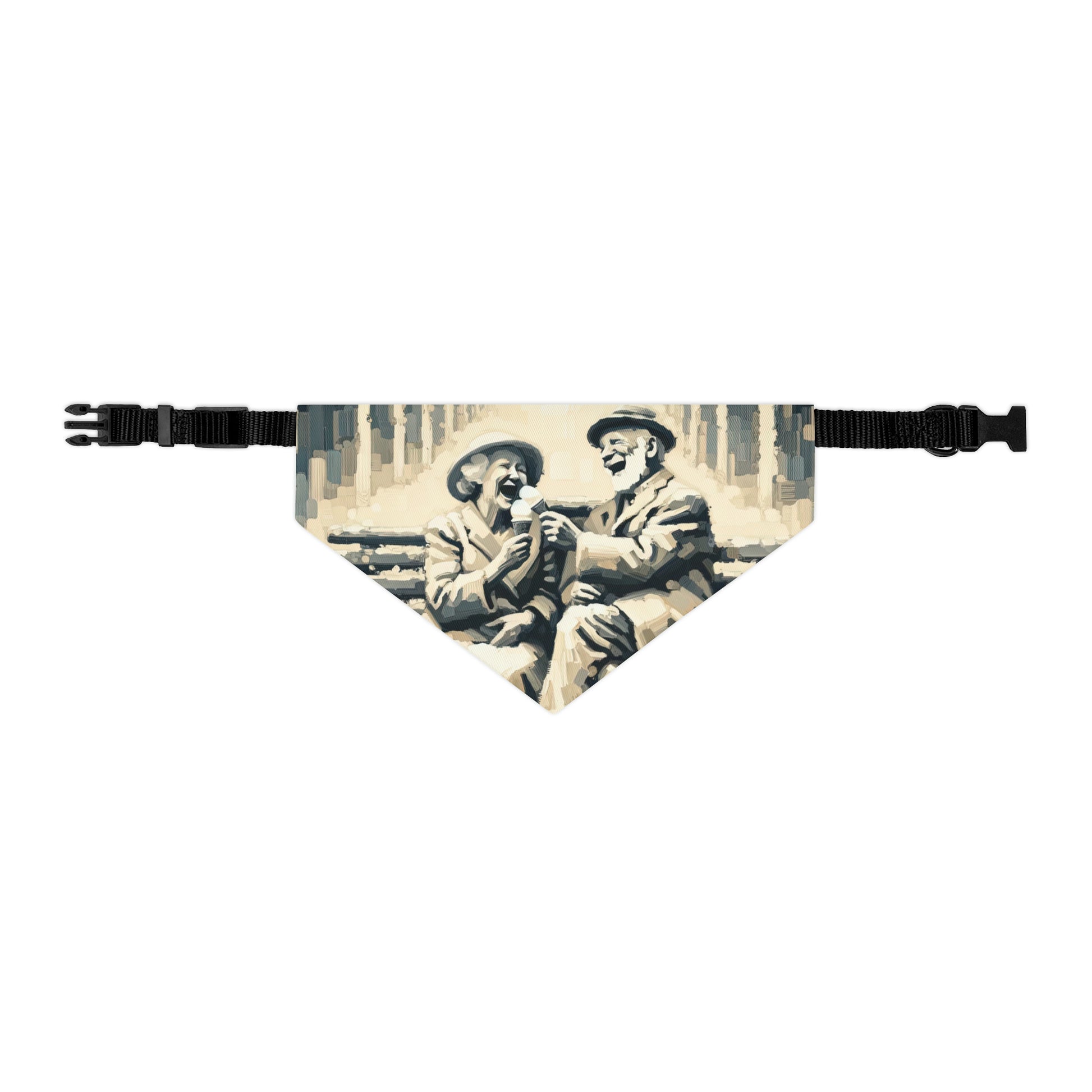 With its Tachism-inspired design, this bandana collar captures the essence of joy and togetherness with expressive brushwork and vibrant colors. The image of a loving couple enjoying each other's company serves as a heartwarming reminder to cherish the moments spent with our furry friends.