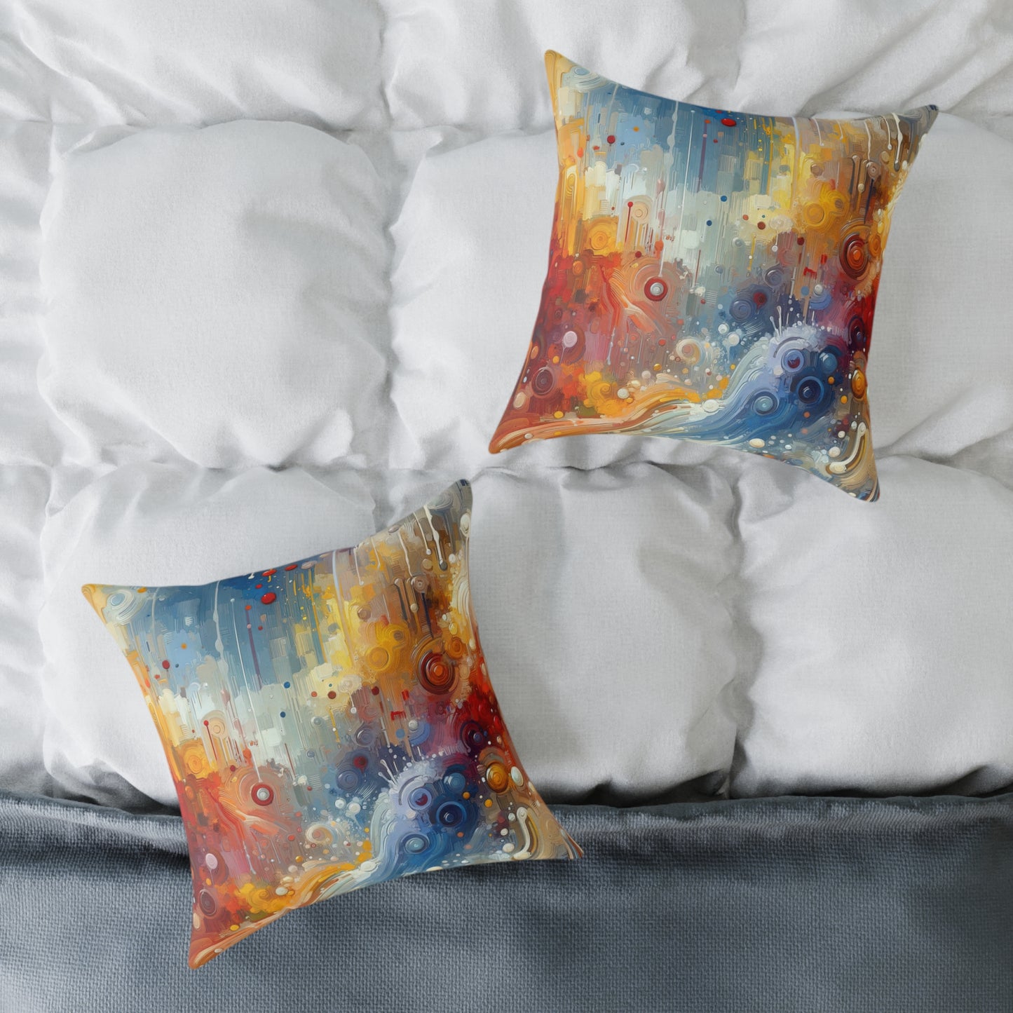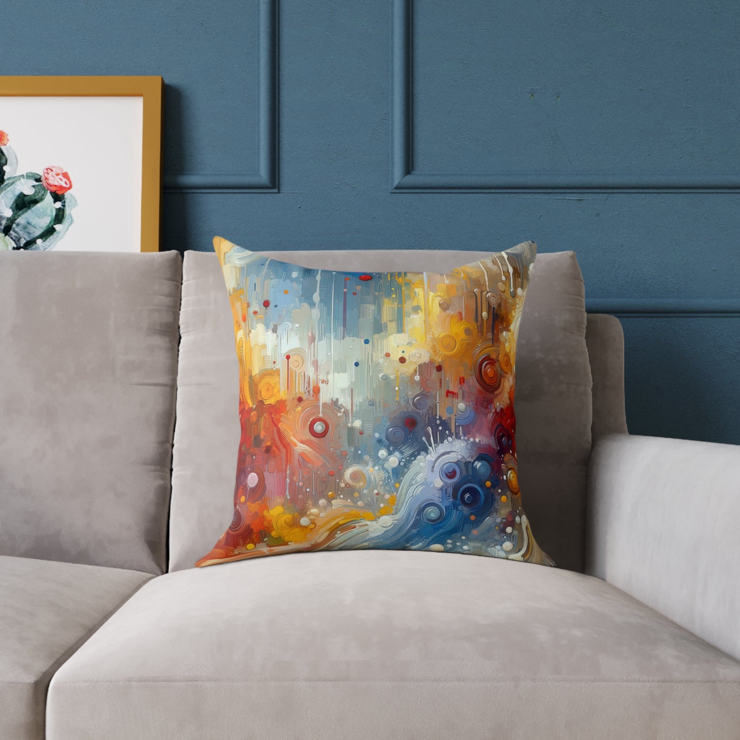 Transform your living space with our custom polyester pillows featuring the enchanting artwork of "Joyous Effortless Exhale." Made from 100% polyester canvas, these pillows are filled with soft polyester filling to provide both comfort and style. The concealed zipper ensures a seamless look, while the double-sided print showcases the vibrant colors and harmonious shapes of the artwork. Available in five sizes, these pillows are sure to uplift any home's surroundings and captivate the eye of guests. Add a touch of joy and contentment to your home decor with these unique and beautiful pillows that will instantly brighten your mood.