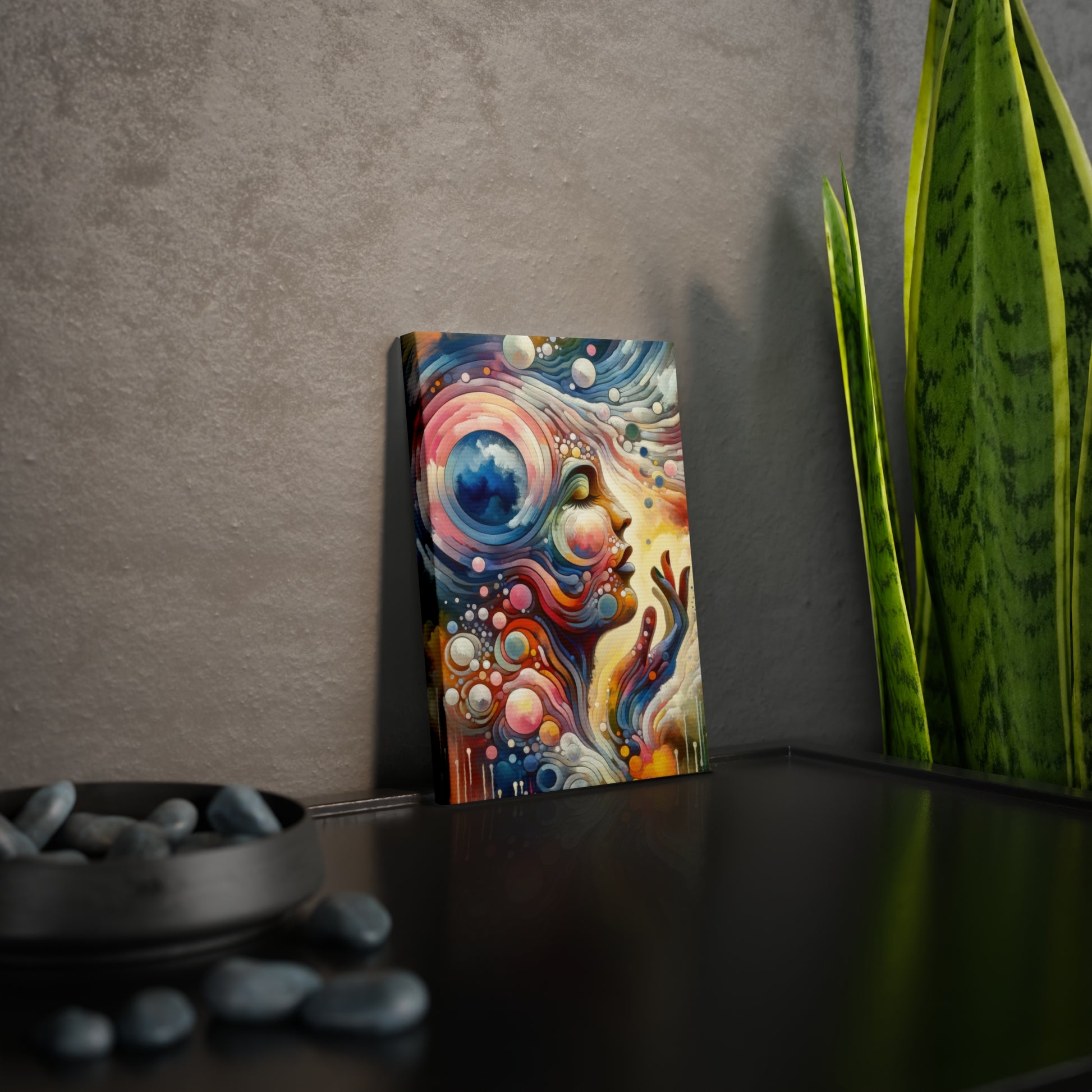 Elevate your space with the transformative beauty of "Mindful Melody Harmony" on a Canvas Photo Tile. This stunning piece invites contemplation of the interconnectedness of mind, body, and spirit through its fluid movement and vibrant hues. The intricate details and merging of earthly and celestial elements symbolize the harmonious balance that can be achieved through mindfulness and self-awareness.