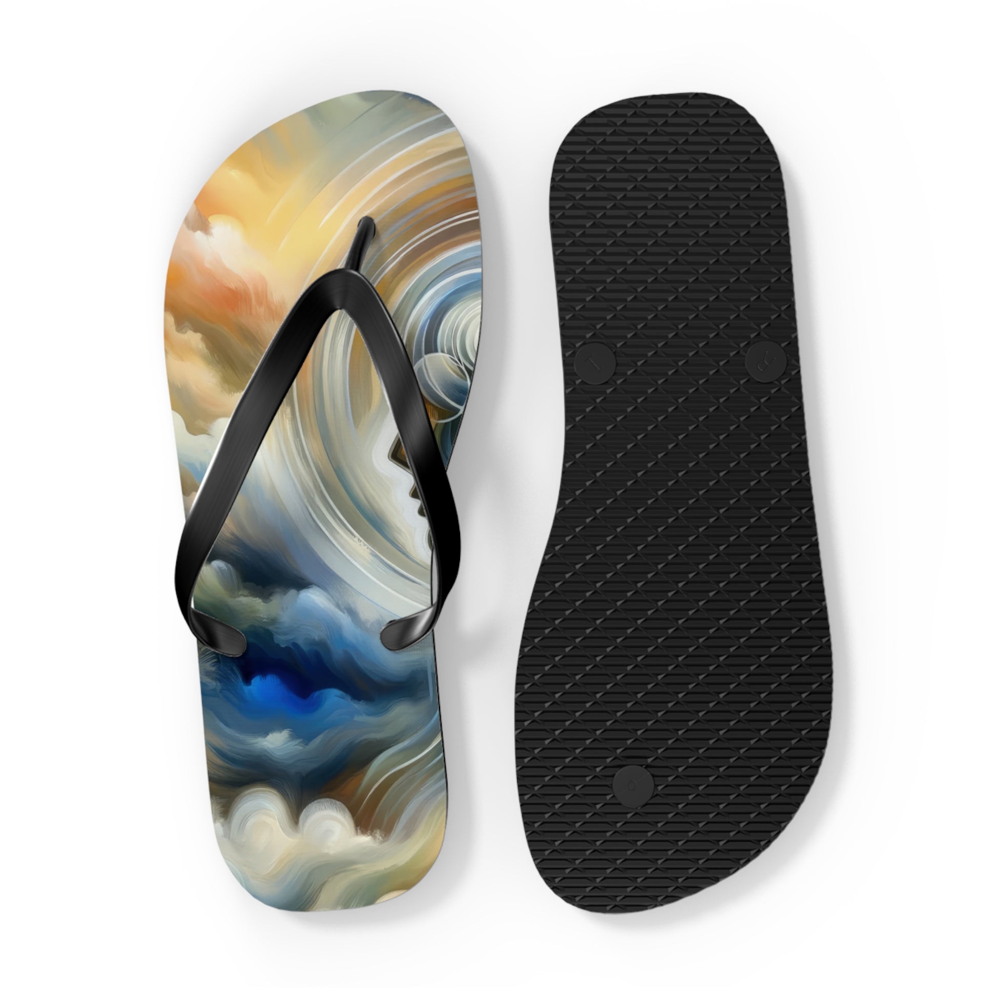 Embrace the beauty of balance and mindfulness with every step you take in these unique and stylish flip flops. Let the art of "Mindful Unified Awakening" inspire you to embark on your own journey of inner unity and mindfulness, while staying comfortable and fashionable all summer long.