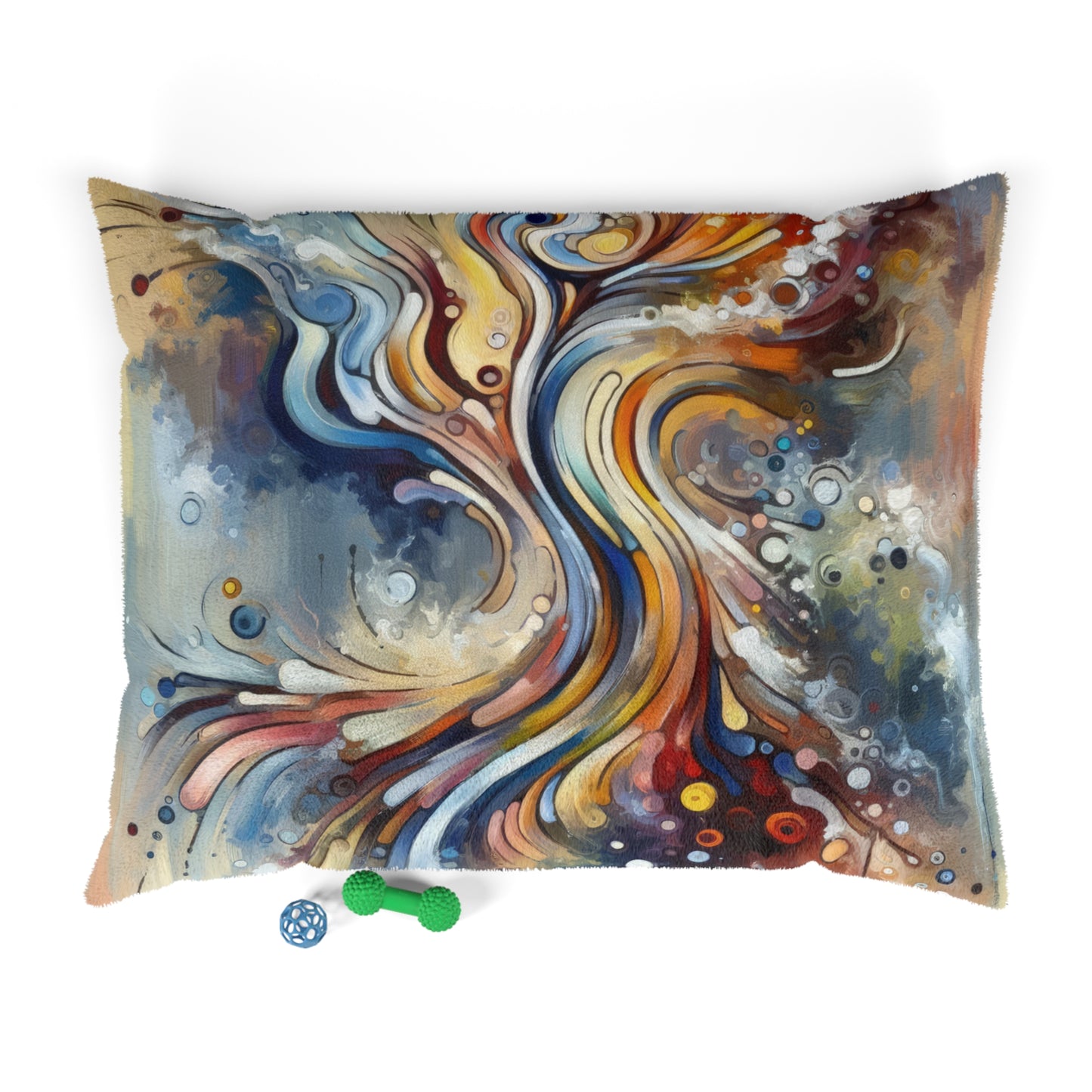 Give your furry friend a cozy and stylish place to relax with our Mindfulness Motion Divine Pet Bed. This unique design features an abstract and energetic composition that serves as a visual meditation on the beauty and complexity of the human experience. The feather soft fleece exterior is printable on one side, while the dark brown zippered back and pillow insert provide comfort and convenience. Your beloved pet will love lounging in their own nest right at your feet, and you'll love keeping them off of your furniture. Made with 100% polyester print area and 100% cotton underside, this pet bed is shape retaining and perfect for indoor use. Available in three sizes with slight variance, this pre-constructed item is a must-have for any pet owner looking to provide a special space for their furry companion. Embrace the present moment with gratitude and awareness as your pet relaxes in style on our Mindfulness Motion Divine Pet Bed.