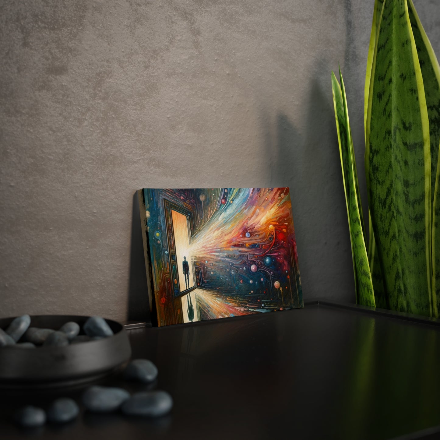 Immerse yourself in the intricate dance between self and the cosmos with our captivating "Mirror Wholeness Tachism" Canvas Photo Tile. This stunning piece invites you to delve into the boundless possibilities that await within the mirror of your own reflection.