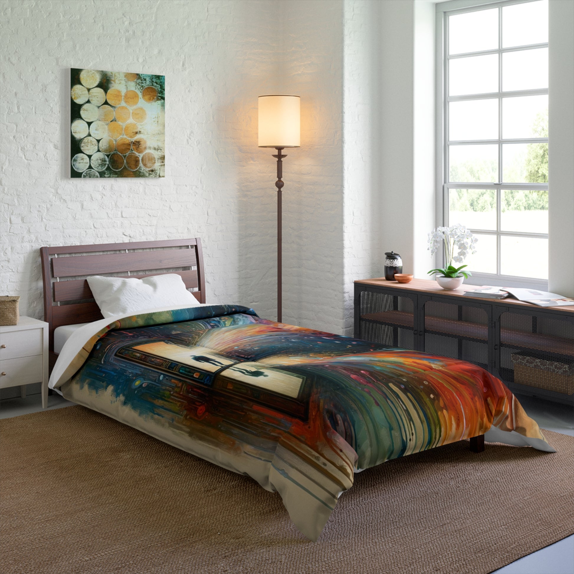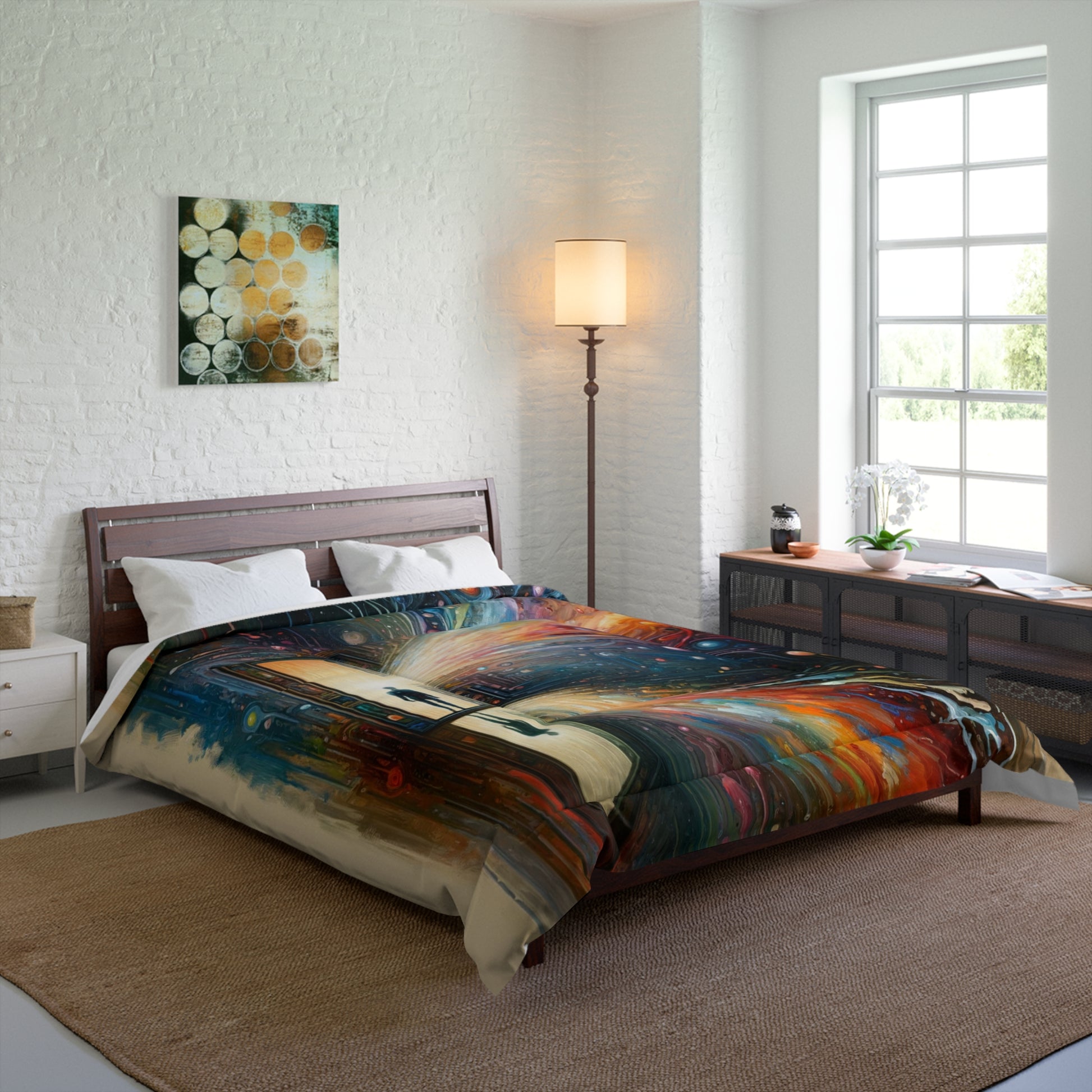 Wrap yourself in the interconnectedness of humanity and the universe with our "Mirror Wholeness Tachism" Comforter. This artwork captures a moment of deep introspection, inviting you to explore the depths of your own existence as you snuggle up underneath this cozy blanket. Made of 100% polyester, this blanket is lightweight yet warm, perfect for chilly nights spent contemplating the universe. The solid bright white back provides a clean and sleek look, while the one-sided print adds a touch of artistic flair. Whether you're curling up with a cup of coffee or waiting for the morning light to wake up the house, this blanket will keep you snug and comforted. Add some unique designs to elevate your space and let your inspiration shine through. Embrace the interconnectedness of all things with our "Mirror Wholeness Tachism" Comforter and enjoy a deep and relaxing sleep like never before.