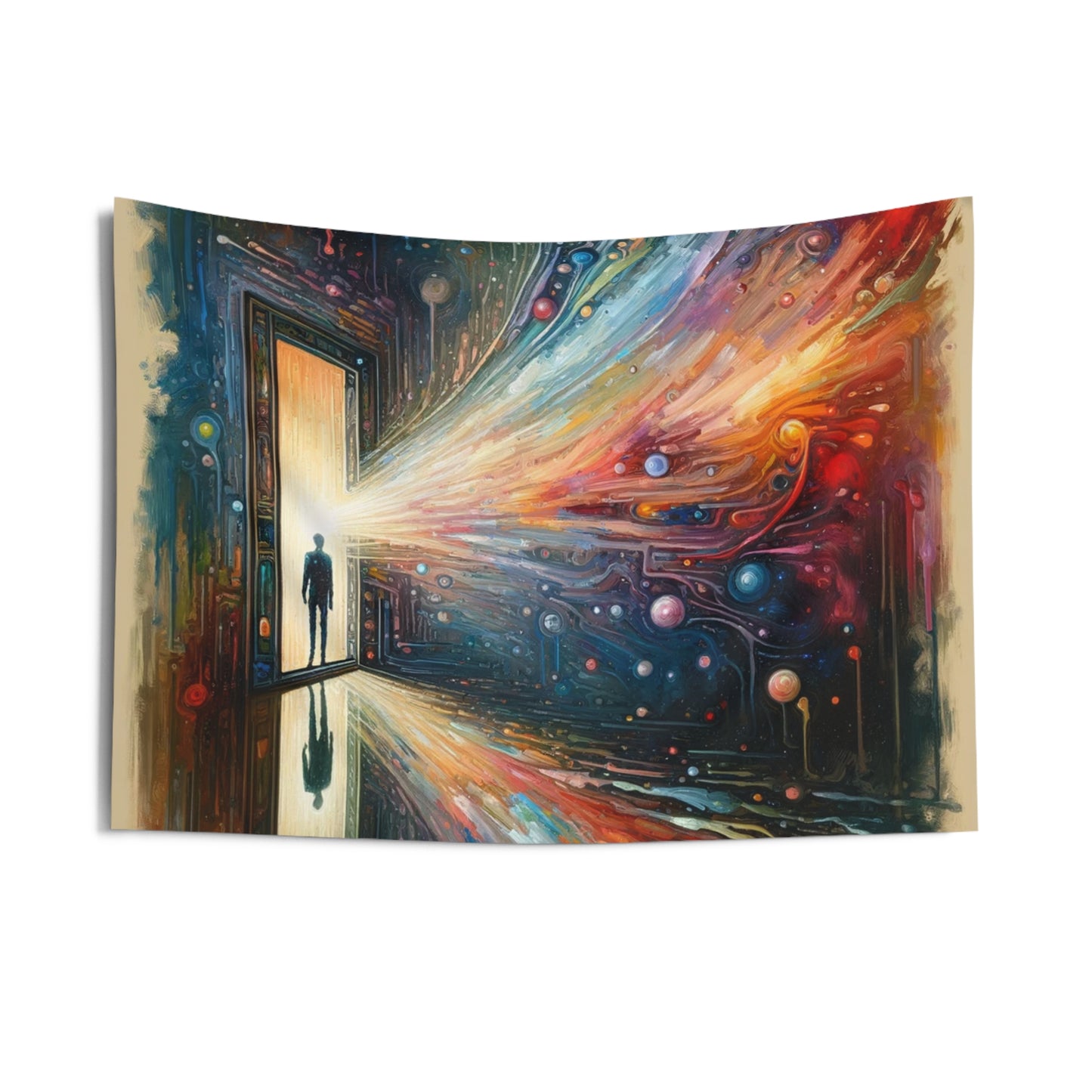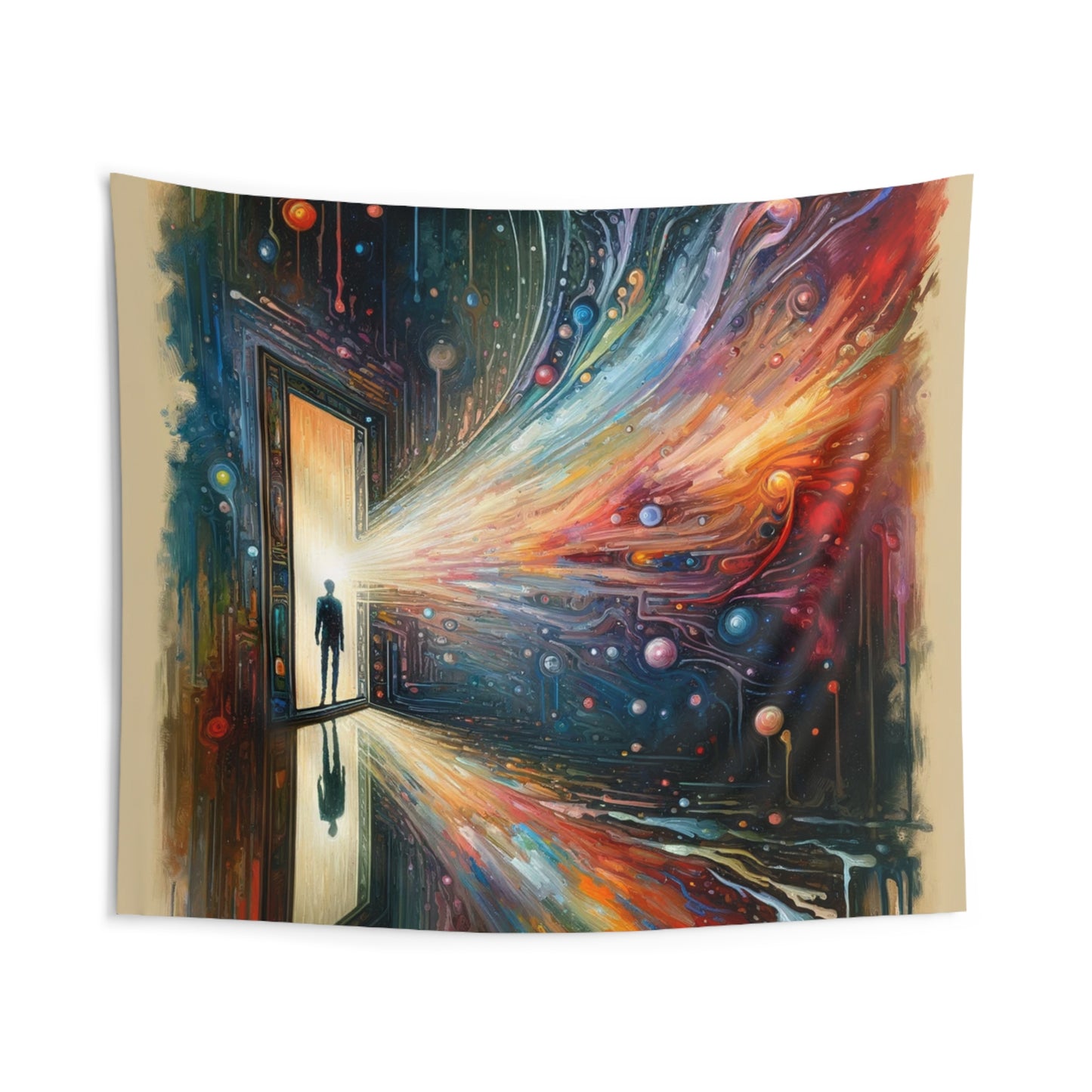Elevate your living space with the captivating "Mirror Wholeness Tachism" Indoor Wall Tapestry. This stunning artwork embodies the interconnectedness of all things and the search for inner harmony, inviting viewers to explore their own reflections in the mirror of wholeness. The artist's skillful use of the Tachism style enhances the emotional impact of the piece, making it a thought-provoking addition to any room.