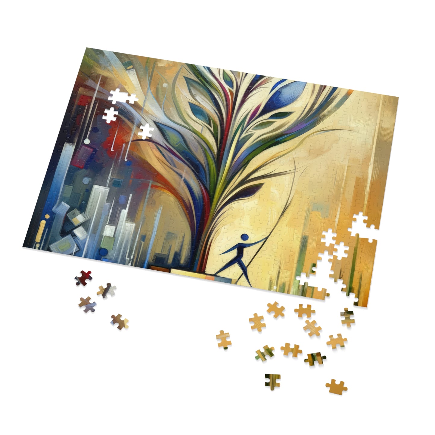 Embark on a journey of introspection and mindfulness with our "Pruning Distraction Tachism" jigsaw puzzle. This captivating piece of art, inspired by the Tachism style, is a visual representation of the constant battle against distractions in our daily lives. The spontaneous and gestural brushstrokes create a sense of urgency and movement, urging viewers to reflect on their own struggles with focus and clarity.