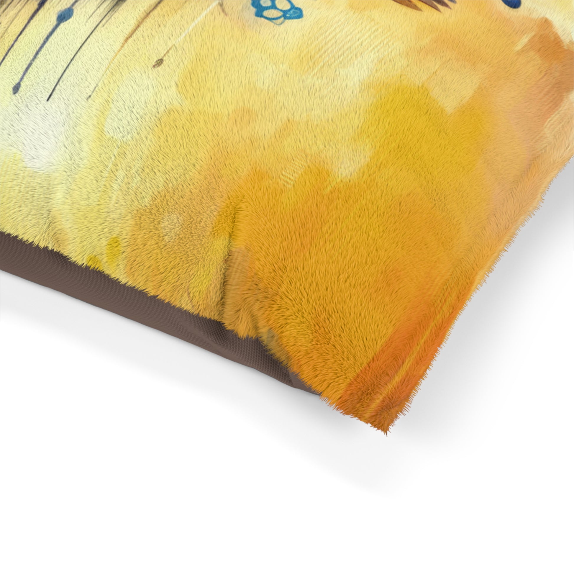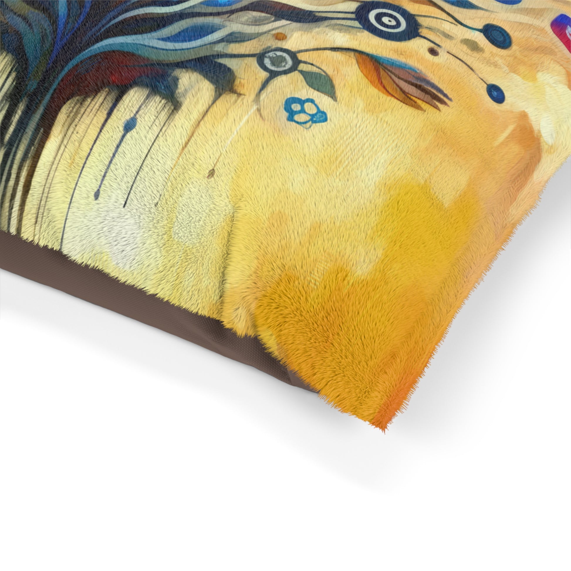 "Give your furry friend a space of their own with our Reflective Digital Meditation Pet Bed! This cozy and comfortable pet bed features a feather-soft fleece exterior that is printable on one side, with a dark brown zippered back and shape-retaining insert for added support. The 100% polyester print area is paired with a 100% Cotton underside for ultimate comfort. Whether your pet is lounging, napping, or simply relaxing, this pet bed provides a tranquil and stylish oasis for your beloved companion. Available in three sizes with a zipper closure for easy maintenance, this pet bed is perfect for indoor use. Create a harmonious environment for your pet with our Reflective Digital Meditation Pet Bed today!"