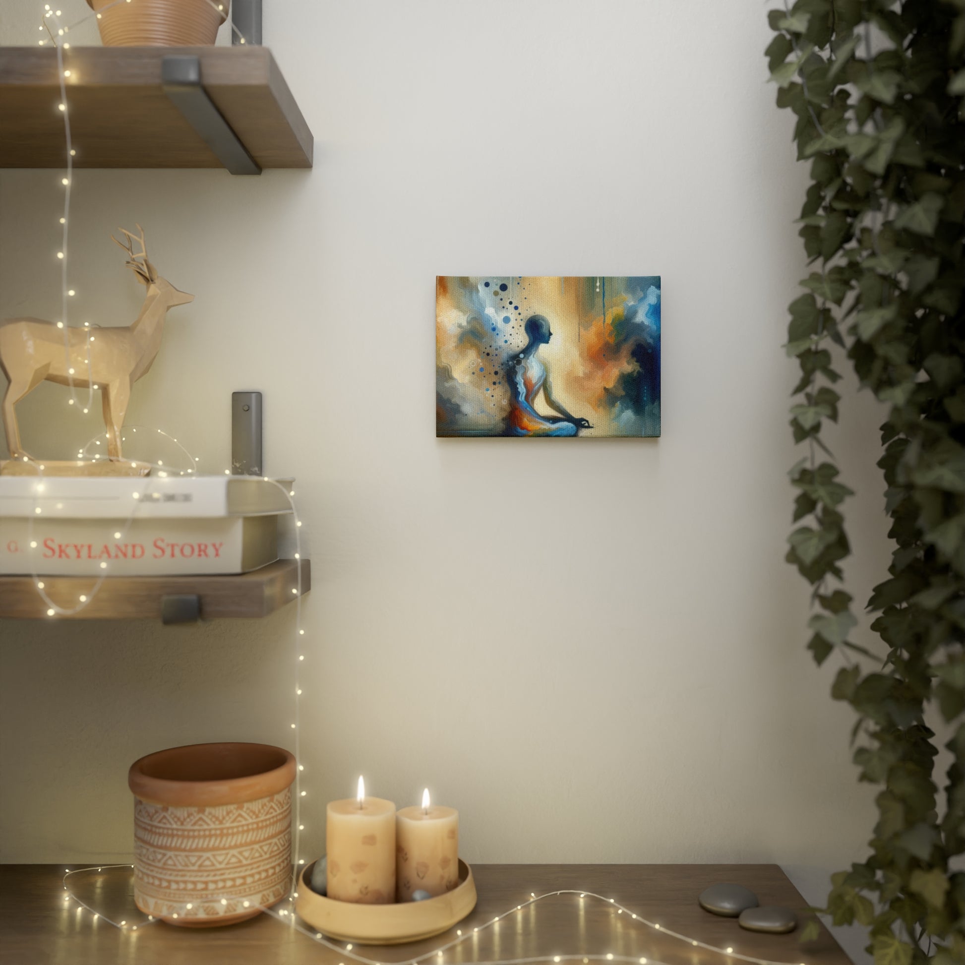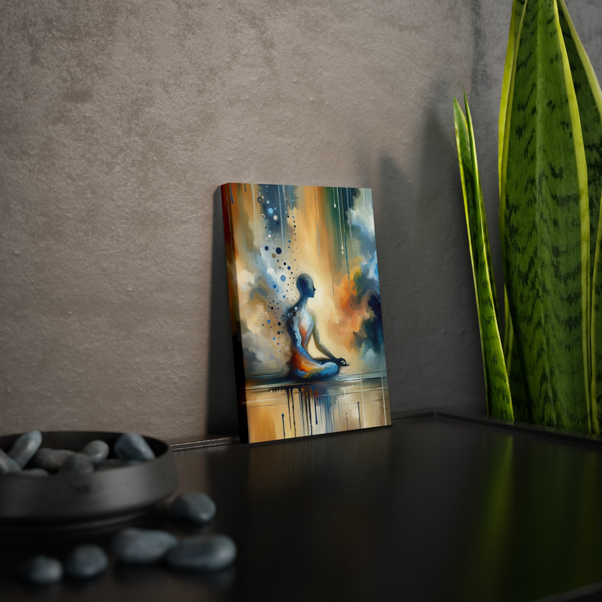 Elevate your space with the captivating presence of the "Resonance Abstract Healing" Canvas Photo Tile. This stunning artwork invites viewers to immerse themselves in the healing energies that resonate within and around them. The bold colors and organic forms evoke a sense of renewal and transformation, while the meditative figure at the center provides a calming focal point for introspection.