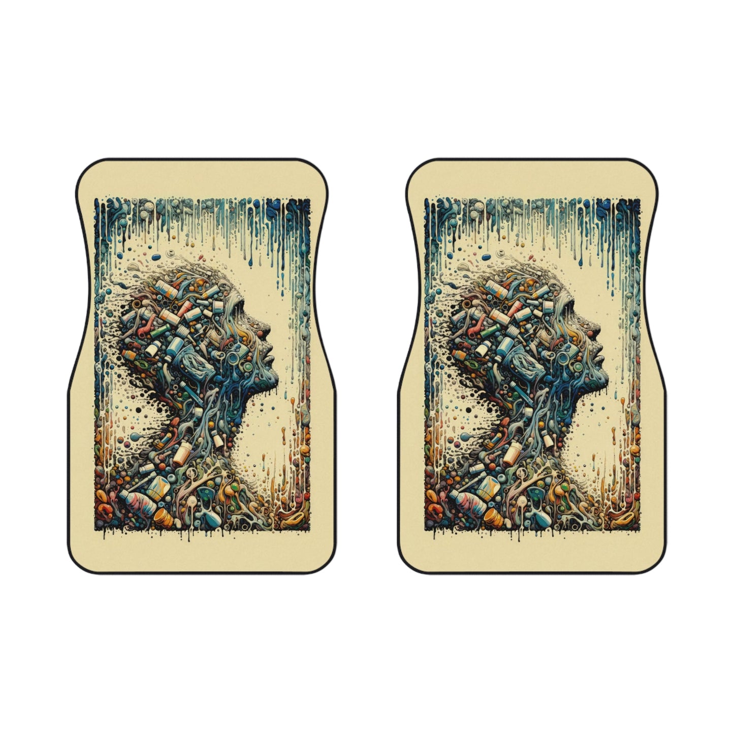 Elevate the aesthetic of your car interior with these custom car mats featuring the captivating artwork 'Rethinking Consumption Transformation'. The artist's use of the Tachism style infuses the piece with emotion and urgency, prompting viewers to reflect on their habits and their impact on the environment. This powerful image serves as a reminder of the interconnectedness between human actions and the natural world, sparking a conversation about the importance of sustainable living.