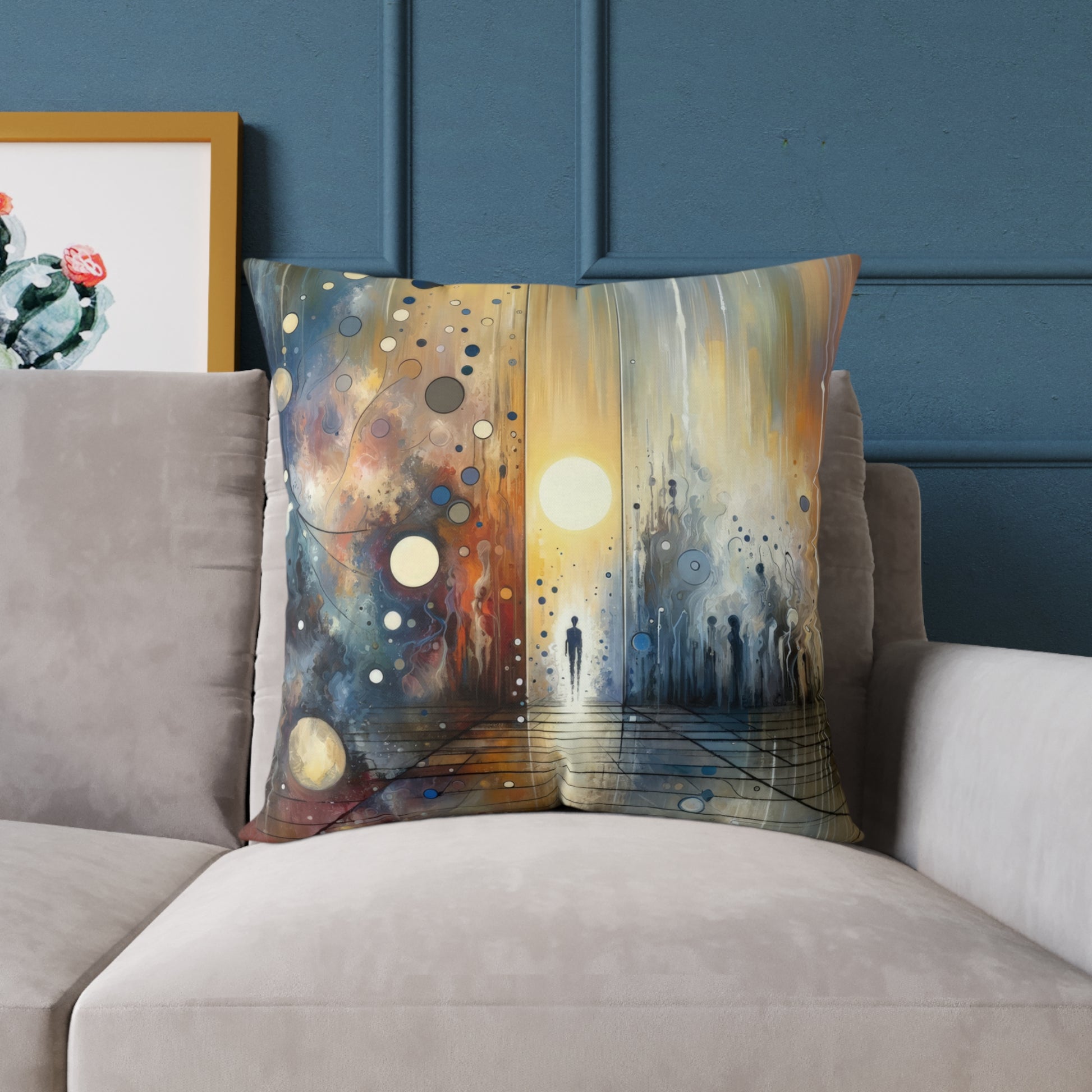 Elevate the ambiance of any space with our "Stillness Transition Abstract" Spun Polyester Pillow. This stunning piece of art invites you to reflect on the delicate balance between chaos and tranquility, movement and stillness, offering a visual representation of the human experience. The concealed zipper ensures a seamless look, while the 100% polyester filling provides optimal comfort. Made with 100% polyester canvas sourced from China, this pillow features a double-sided print for added aesthetic appeal. Available in five sizes, this customizable pillow is the perfect way to enhance your home decor and create a unique focal point that will captivate guests and uplift your mood. Add a touch of peace and transformation to your living space with our exquisite polyester pillow.