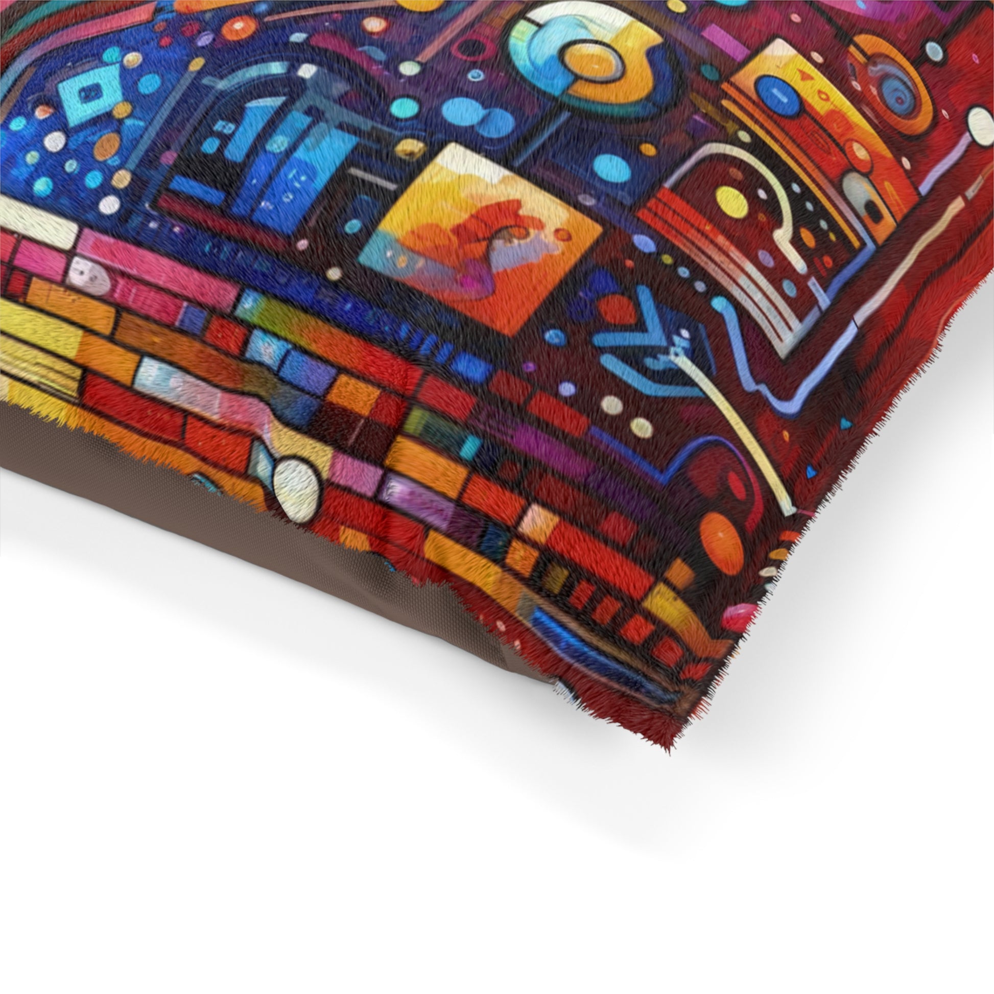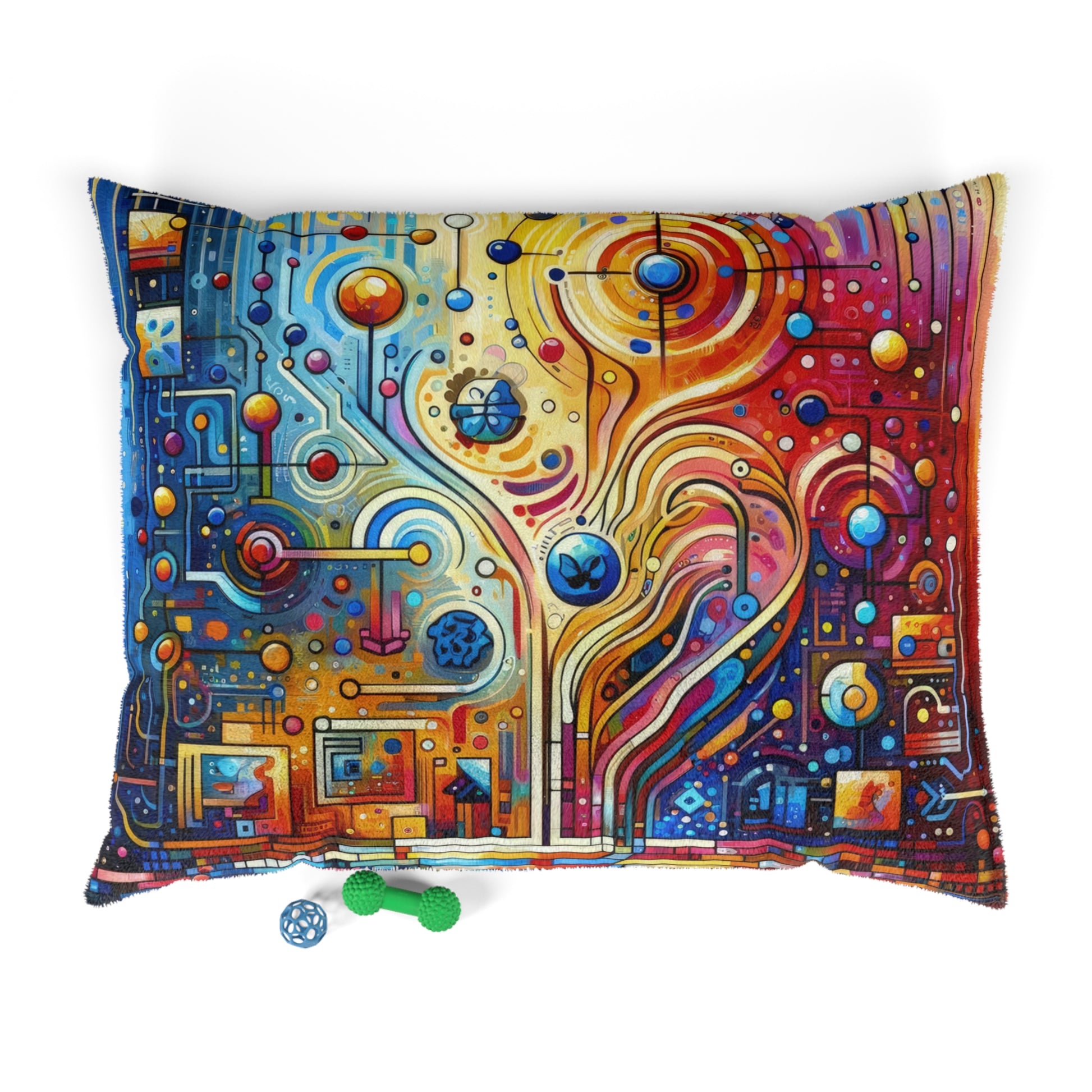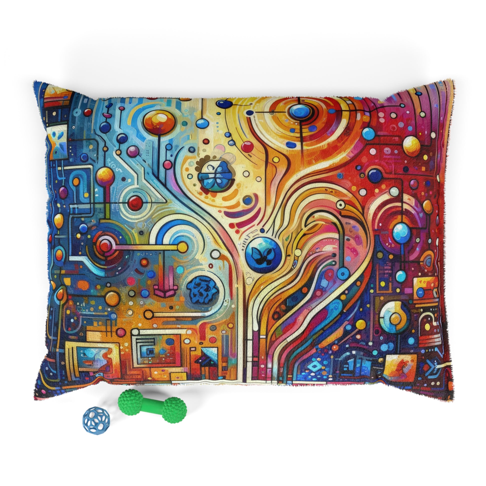 Introducing our Pet Bed featuring a stunning design inspired by the complex dynamics of the digital era. This bed is not just a comfortable resting place for your beloved furry friend, but also a visual representation of the importance of empathy and understanding in modern relationships and communities.