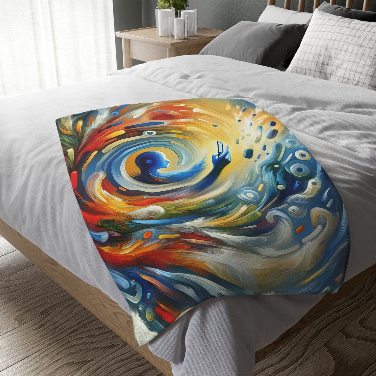 Wrap yourself in the beauty and complexity of modern relationships with our "Swipe Connection Tachism" Velveteen Microfiber Blanket. This stunning blanket features a mesmerizing design that captures the essence of online connections, blending cool, serene blues with energetic, warm colors. The brushstrokes and splatters add a sense of spontaneity and movement, reflecting the unpredictable nature of human interactions in the digital age.