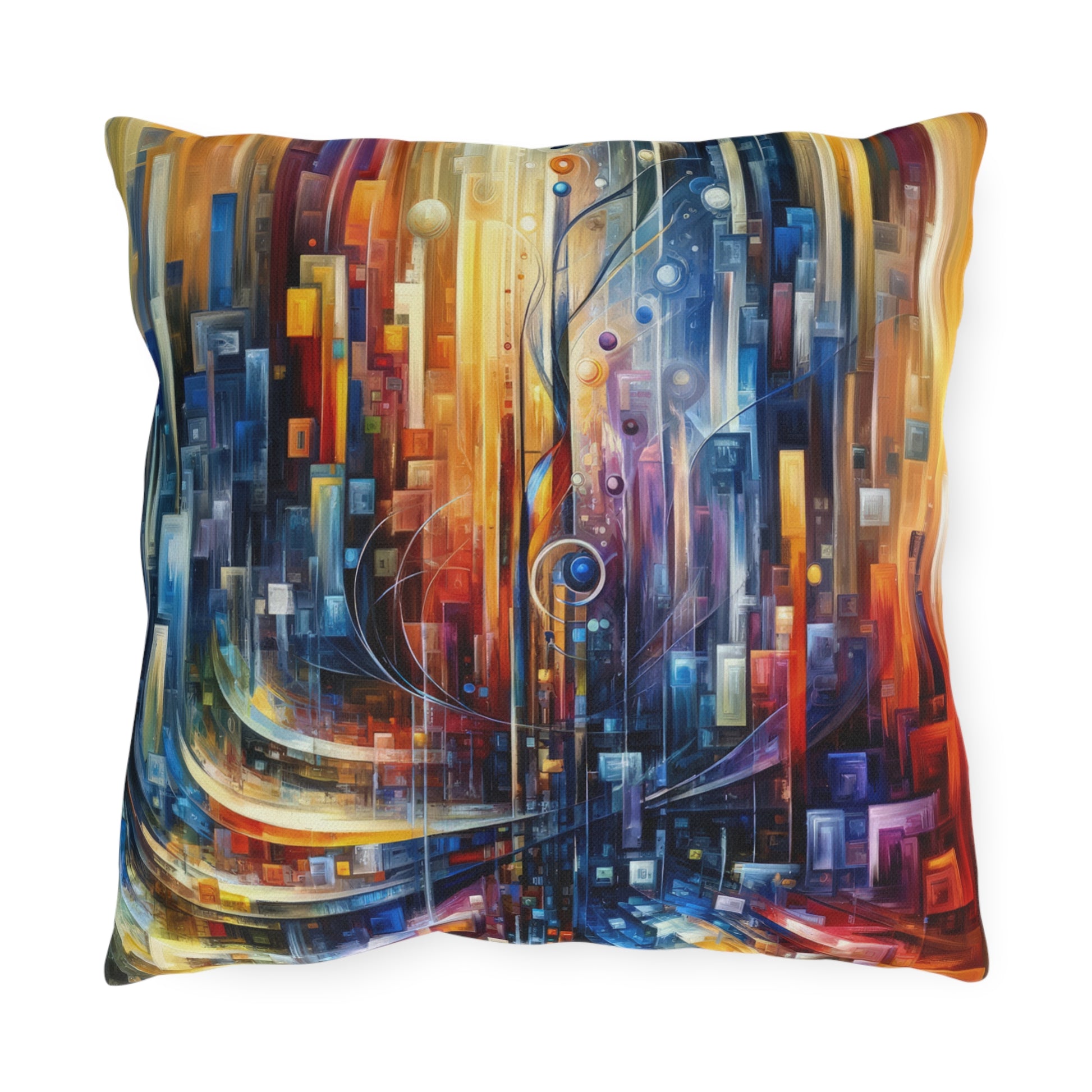 Elevate your outdoor oasis with our stunning "Symphonic Glass Resonance" custom outdoor pillows. Inspired by the vibrant energy of music, these pillows invite you to immerse yourself in a symphony of color and shape. The Tachism painting style adds a sense of spontaneity and rhythm, mirroring the improvisational nature of live music performances.